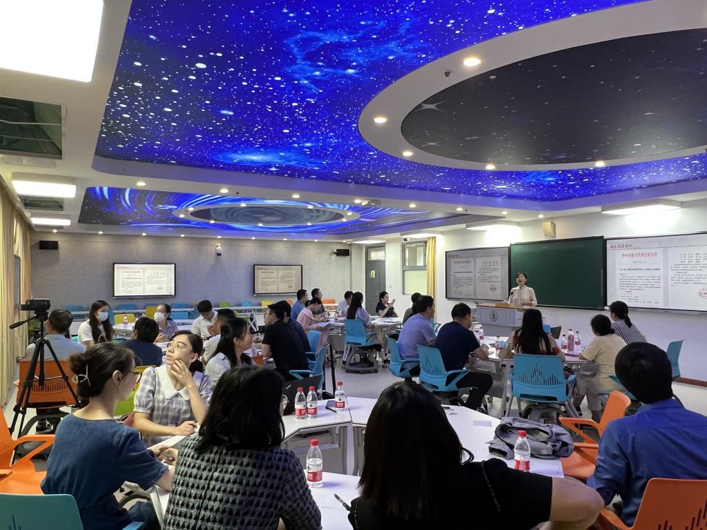 工作坊最后,理学院曹敏惠老师以《有机化学》为例进行了课堂教学示范,并与参训教师进行了教学反思与互动。如何有效设计和融入思政元素,如何平衡思政元素与专业内容?如何进行课程思政的效果评价?指导团队都与参训教师进行了深入探讨与碰撞,现场热烈而有序,课程思政的芬芳氤氲着整个智慧教室。