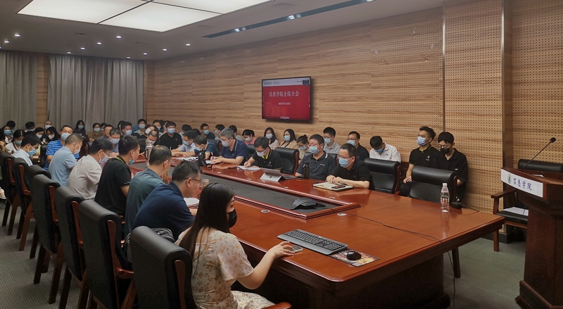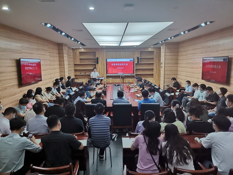 郑学刚就近期疫情防控、教学秩序稳定、推进职称评审改革、建强支部促进青年教师成长、近期党建与思政工作等进行了强调布置。徐勋光、刘进、李国亮等就本科教学与人才培养,开学上路、大学生思想政治教育与安全稳定、就业工作,研究生教育与国际合作交流等进行了专门布置。张红雨院长作了总结讲话。张院长通报了学校、学院暑期务虚会相关情况,他表示暑期学院经历了“压力测试”,在学科与平台建设、队伍建设上取得了积极进展,展望未来他提出,学院发展面临更为复杂严峻的国际形势和各方压力,学院要坚持“心中有老师”的发展理念,要坚定“入主流、强特色、创优势”的发展路径,未雨绸缪,深入思考,深入聚焦,坚持“四个面向”、底层交叉、底线思维、“BT+IT”,努力做到“力出一孔”、见微知著,为学院、学校、国家的发展进步作出新的更大贡献。