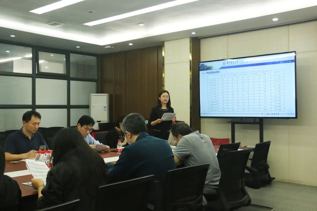 首先,辅导员詹慧光老师汇报了学院2022届毕业生就业进展情况,根据数据分析当下推进就业工作的重点和难点。