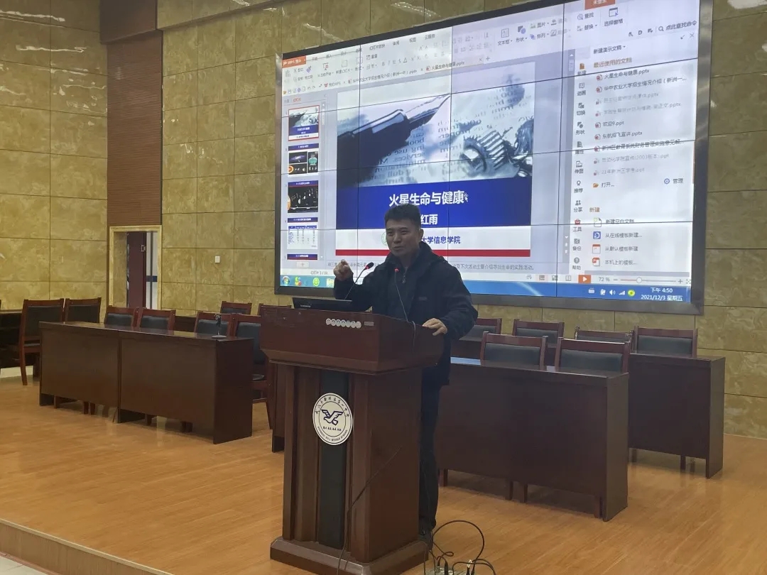 “人类为什么要探索外太空呢?”“真的存在外星人吗?”“三体中是否有违背科学的内容存在呢?”报告一开始,张红雨教授就通过几个学生感兴趣的问题,开启了今天的火星探测之旅。从地外生命探测,到土星木星可居住性分析,再到中国火星探测任务,“祝融号”传回新照片,张红雨教授分别从火星历史火星生命标志物检测、空间生存模拟等方面进行了讲解。他还向同学们介绍了华农火星生命与健康团队的研究成果,展示了麻豆 优秀校友廖国瑞的风采,担任长征五号B遥二运载火箭发射任务的“01”指挥员,借此激发同学们的科研兴趣和报国热情,鼓励大家走进华农、走近科学、走向未来。报告结束,张红雨教授还与现场学生进行了提问互动。