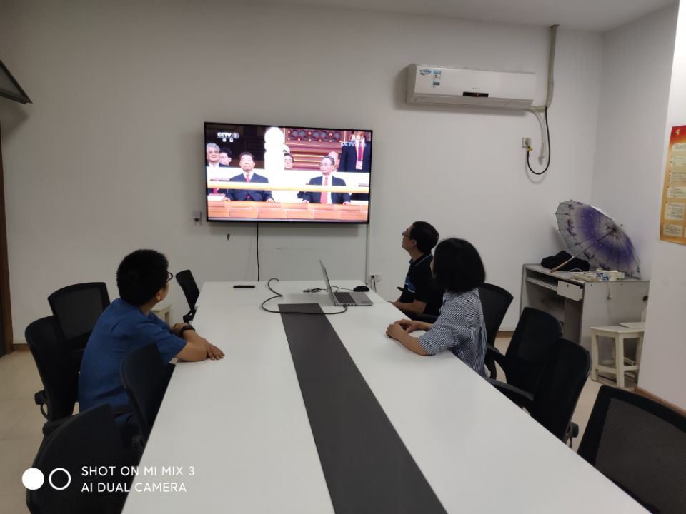 学院在C314会议室设置集中收看点,明庭庆书记、张红雨院长等班子成员和师生一同观看