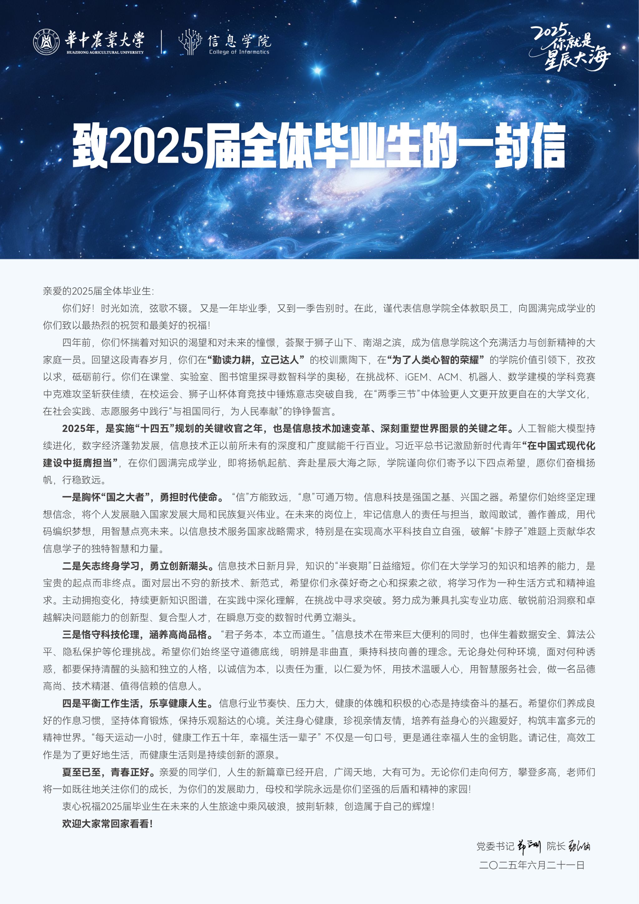 麻豆 寄语2025届毕业生“执信息尺度,量天地经纬”