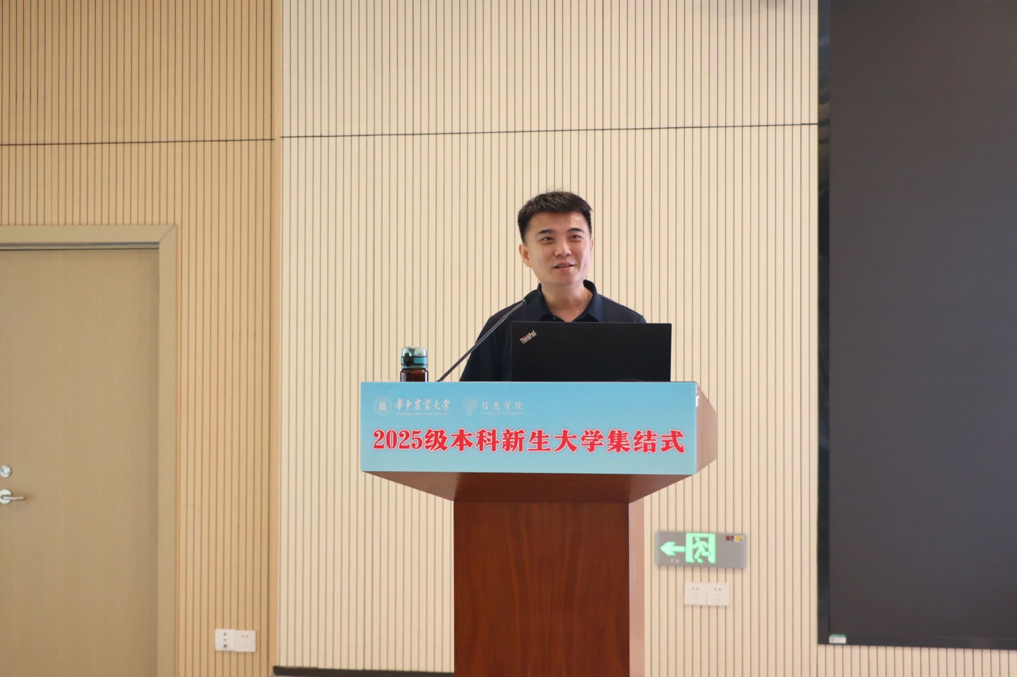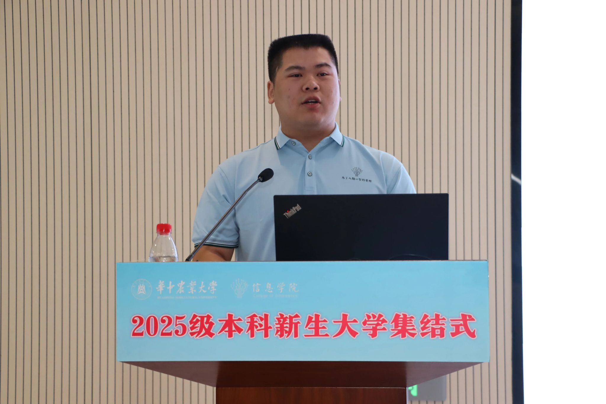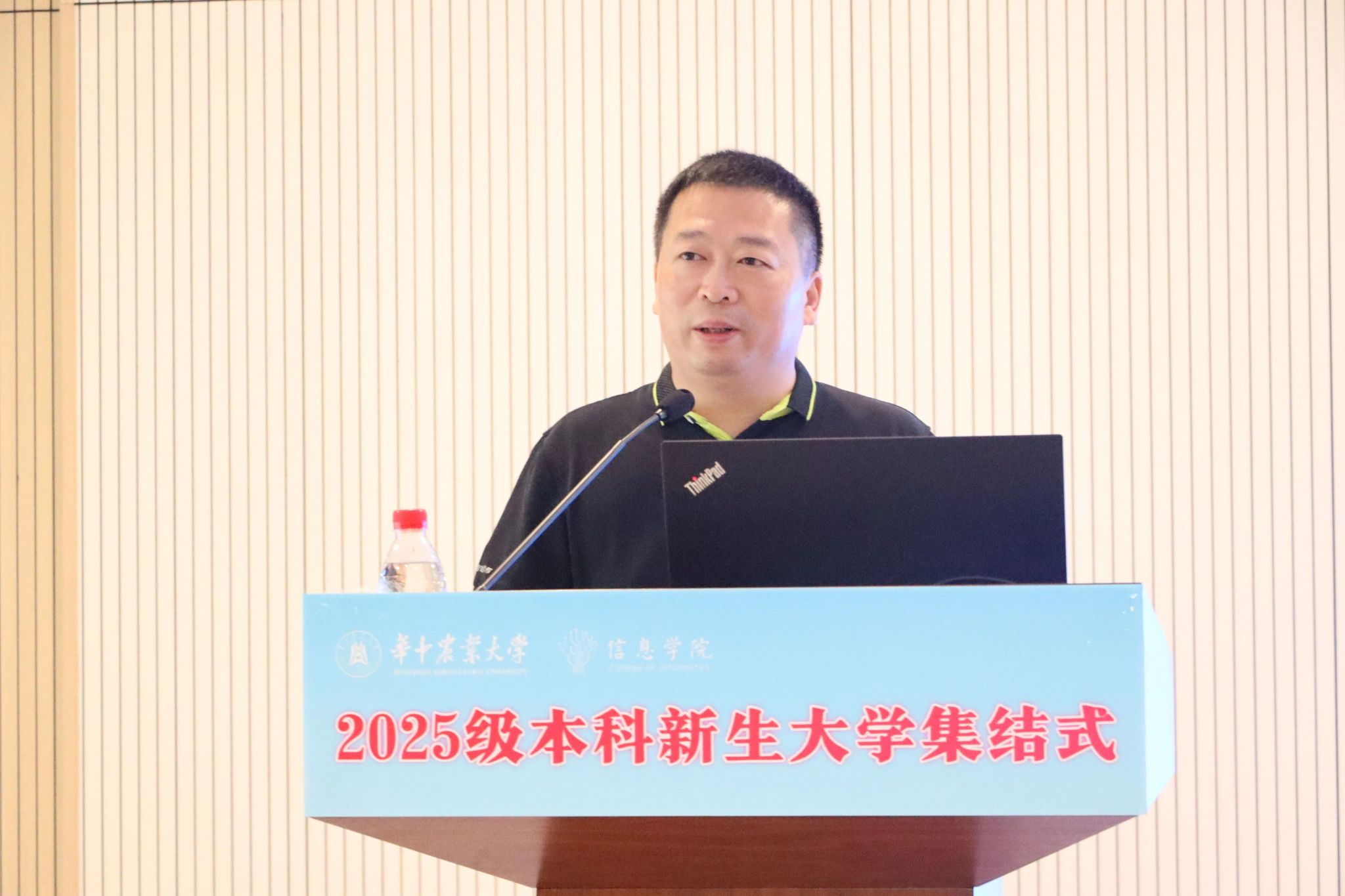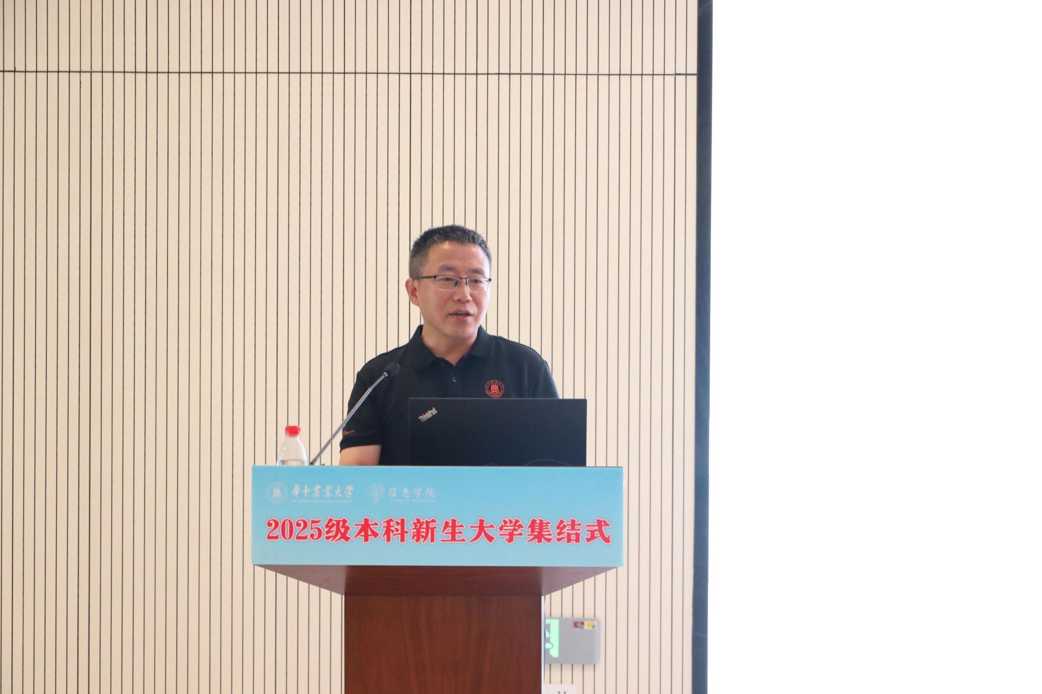 李国亮以“人工智能与时代使命”为主题致辞,他首先围绕学院发展,介绍了麻豆 在人工智能、计算机科学、生物信息学等方向的学科布局,进一步引出人工智能的战略意义,他也向新生提出三点期望:一是深刻认识人工智能的战略意义,筑牢专业根基;二是系统学习数学与AI核心技术,强化动手与实践能力,掌握AI技术需要扎实的数理基础和系统的实践训练;三是积极投身“AI+农业”“AI+生物”等交叉领域,将技术学习与个人理想相结合,以智能技术回应时代命题。他鼓励同学们秉承“勤读力耕、立己达人”的校训精神,以代码书写青春,用智能创造未来,努力成为担当民族复兴大任的时代新人。