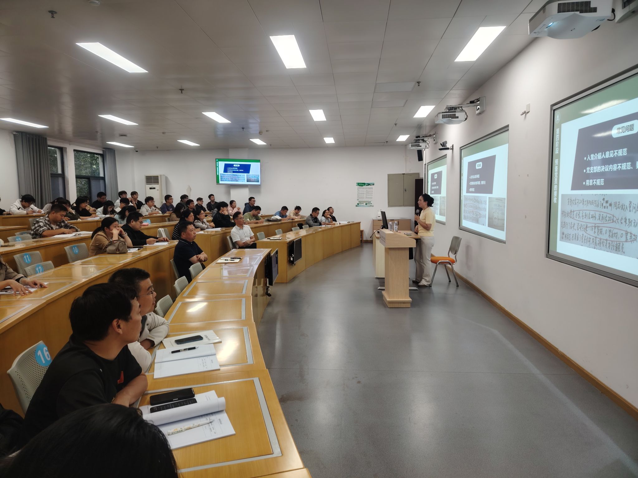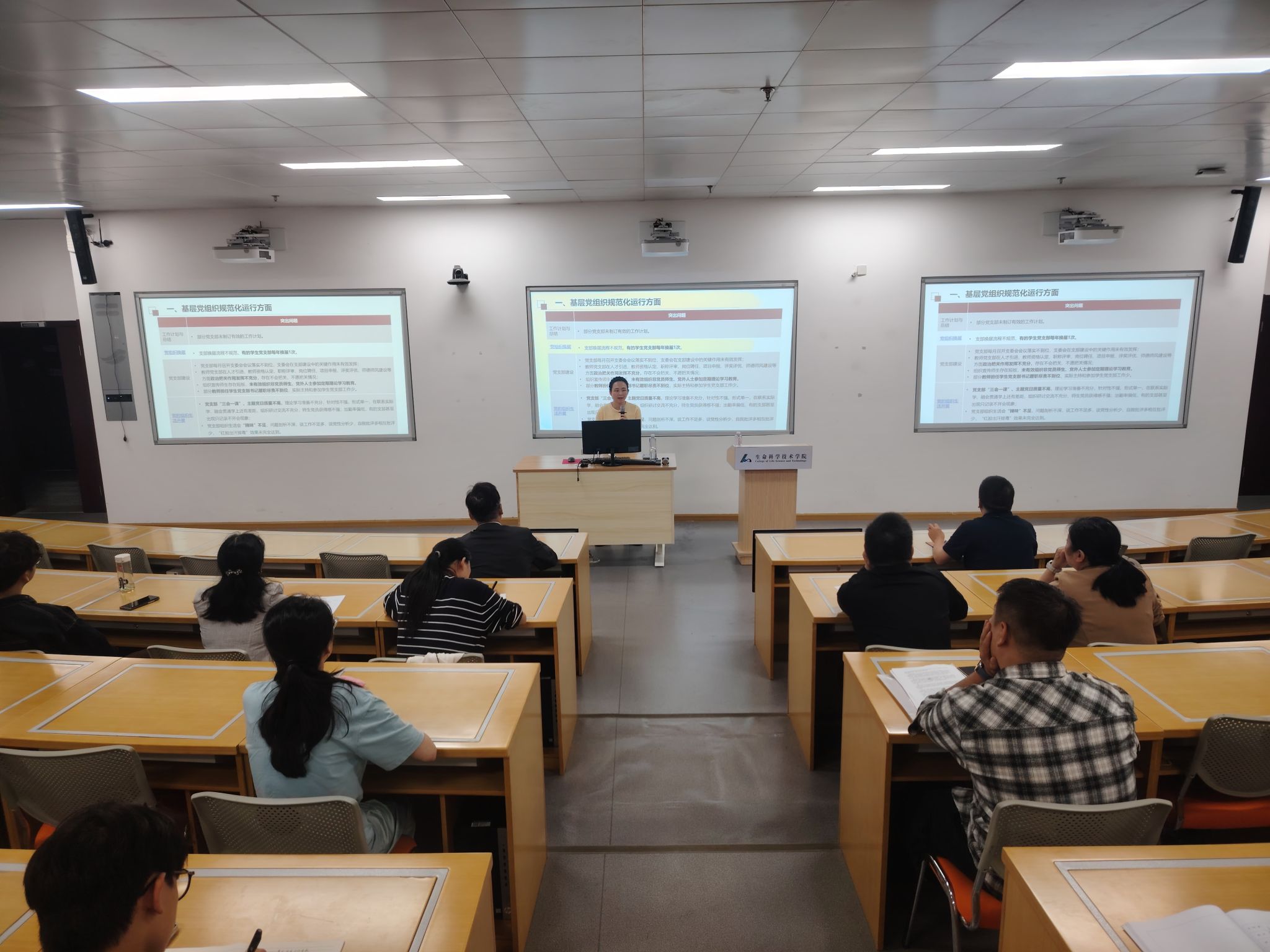 付兆佳首先就基层党组织规范化运行方面内容作了详细讲解,她表示基层支部容易在工作计划与总结、党组织换届、党支部建设、党的组织生活开展等方面存在不足或偏差,各党支部尤其要重视“三会一课”的严肃性、规范性,注重实事求是、提升质效。随后,付兆佳就党员发展和教育管理方面内容进行了强调说明。她分别结合案例从党校工作、发展党员工作、党员日常教育管理等三方面进行了细致讲解,特别介绍了发展党员的五个阶段、25个程序。随后,她就出国(境)党员、流动党员的教育管理以及《中国共产党党员教育管理工作条例(2019年)》《中国共产党不合格党员组织处置办法(2024年)》等进行了强调说明。付兆佳最后表示,“规范党的组织生活,抓实党员教育管理,让我们一起努力!”