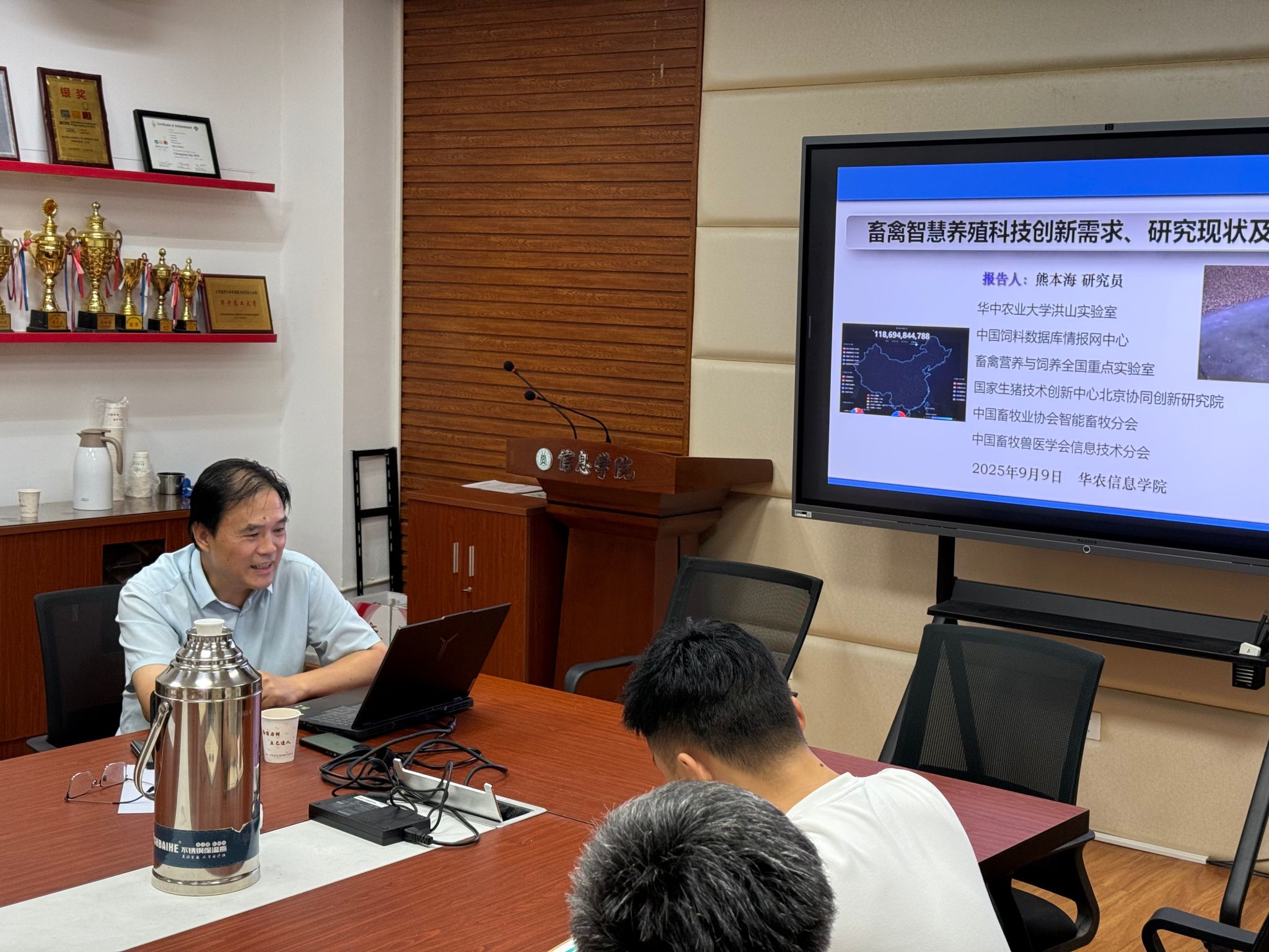 (图文 | 叶文昊 编辑 | 辛西 审核 | 李国亮)9月9日下午,麻豆 年度第11期“Happy Hour”学术论坛在一综B113举行。本期论坛特邀中国农业科学院北京畜牧兽医研究所熊本海研究员为师生作题为《畜禽智慧养殖科技创新需求、研究基础及“十五五”规划思考》的学术报告。
