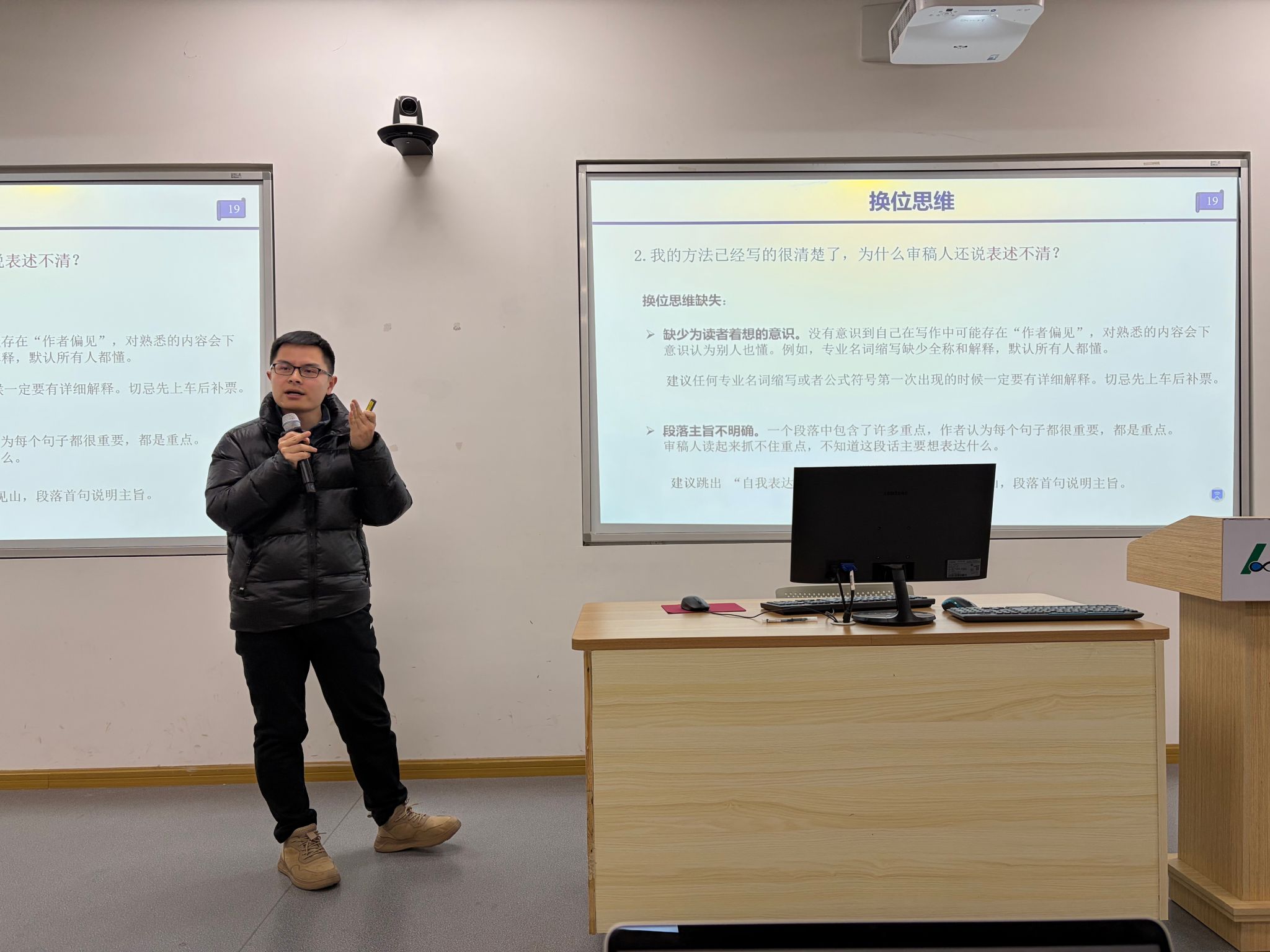 王玉龙老师以“论文写作个人思考”为题提出三“思”而行:底线思维强调恪守学术规范,警惕学术不端与不当使用AI;换位思维要求站在读者视角清晰组织论证;销售思维则要把创新点的重要性、贡献与实验合理性讲透,让审稿人认可价值。