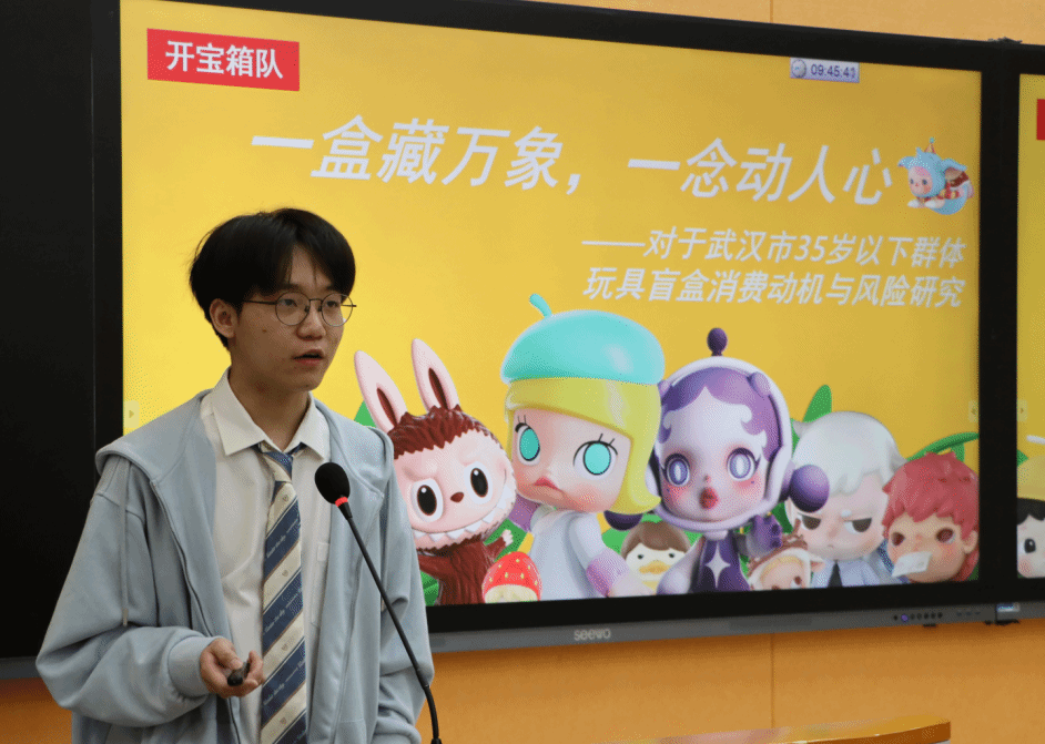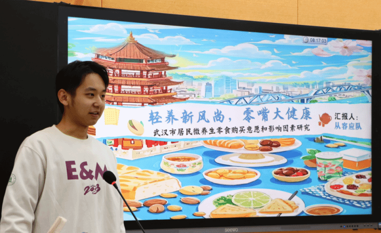 第二阶段校赛选拔赛于3月23日,在第四教学楼C207举行,比赛现场气氛紧张而热烈。本届赛事选题紧扣社会脉搏,既有政策热点的深度解码——结合两会“体重管理年”议题,探讨“轻养生”新风尚下武汉市居民微养生零食的购买意愿及其影响因素;同时深入生活,聚焦“爱熬夜”青年群体的健康焦虑与消费诉求,解码保健产品及睡眠经济市场的潜在增长点;更有奇思妙想,创新探索消费蓝海,深挖盲盒经济背后的消费驱动力;更涌现出人文关怀与城市发展相结合的创新尝试,如探讨武汉花朝节游客体验和文旅产业联动的未来愿景,武汉市公共交通适老化改造的满意度调查并进行路径优化的探索等。