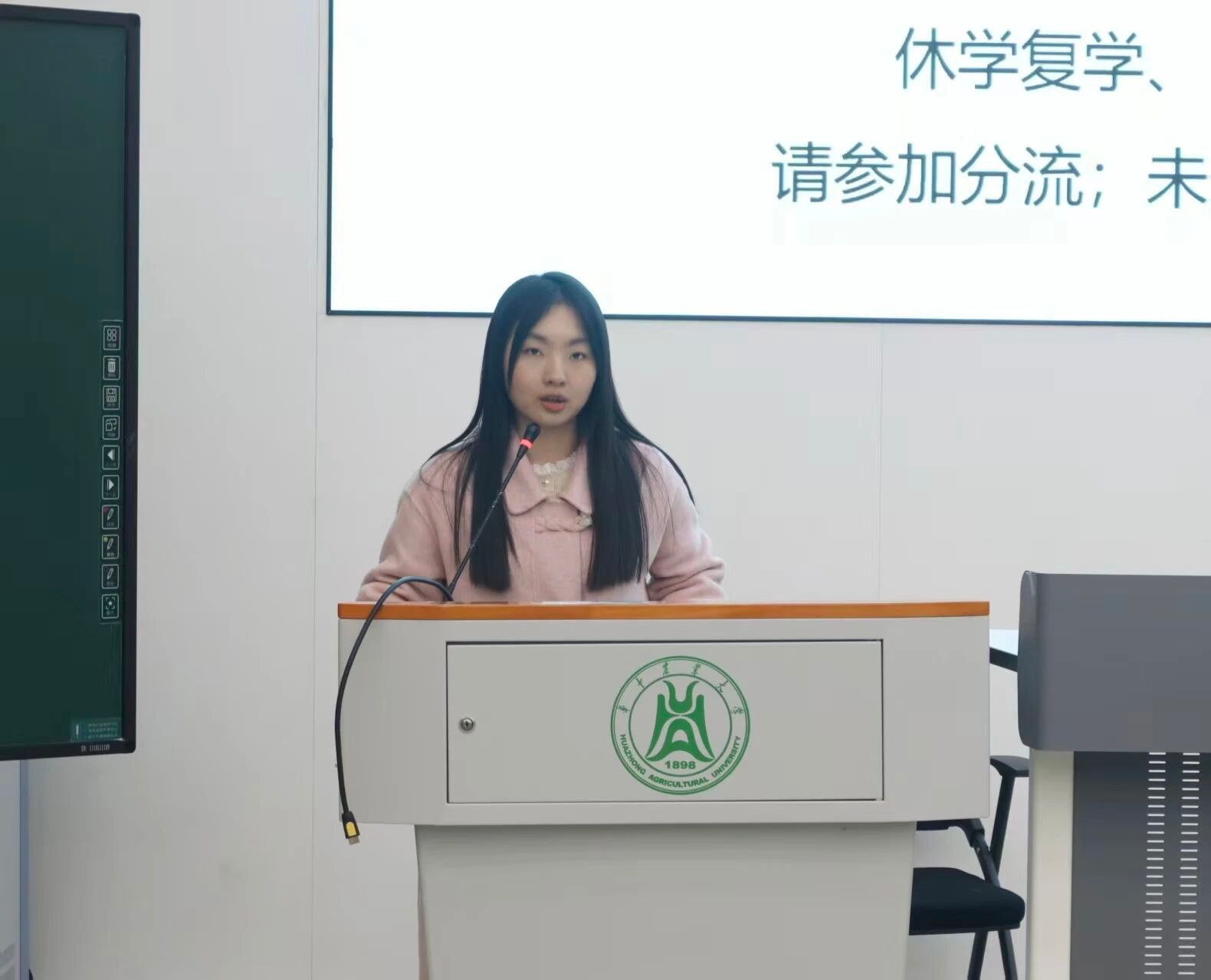 随后,叶双休为大家进行了政策解读,着重介绍了分流流程,各专业接收人数以及如何根据志愿进行分流。叶双休表示:“各专业各有优势,发展方向侧重不同,学科交叉性强,都是优质选择。”最后,她提醒大家注意时间节点,综合宣讲内容和个人规划审慎填报志愿。