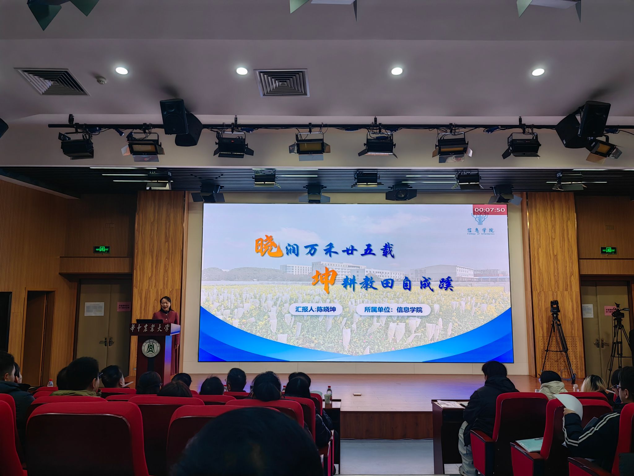 陈晓坤老师长期坚守教学一线,主讲《概率论与数理统计B》等课程,曾获湖北省高校教师教学创新大赛特等奖、西浦全国大学教学创新大赛年度教学创新一等奖等多项荣誉。作为省级线上线下混合式一流本科课程《概率论与数理统计B》负责人,她亦获评“狮山硕彦教学能手”称号。在教学过程中,她始终以学生为中心,结合农科人才培养需求,不断探索教学模式创新、优化教学内容,积极引入人工智能技术,注重启发与互动,着力提升学生的逻辑思维与创新能力。其严谨细致的教学态度和生动易懂的授课风格广受学生好评,教学评价持续位列学院前茅。此次获得教学质量优秀一等奖,正是对她长期潜心教学、深耕育人事业的充分肯定。