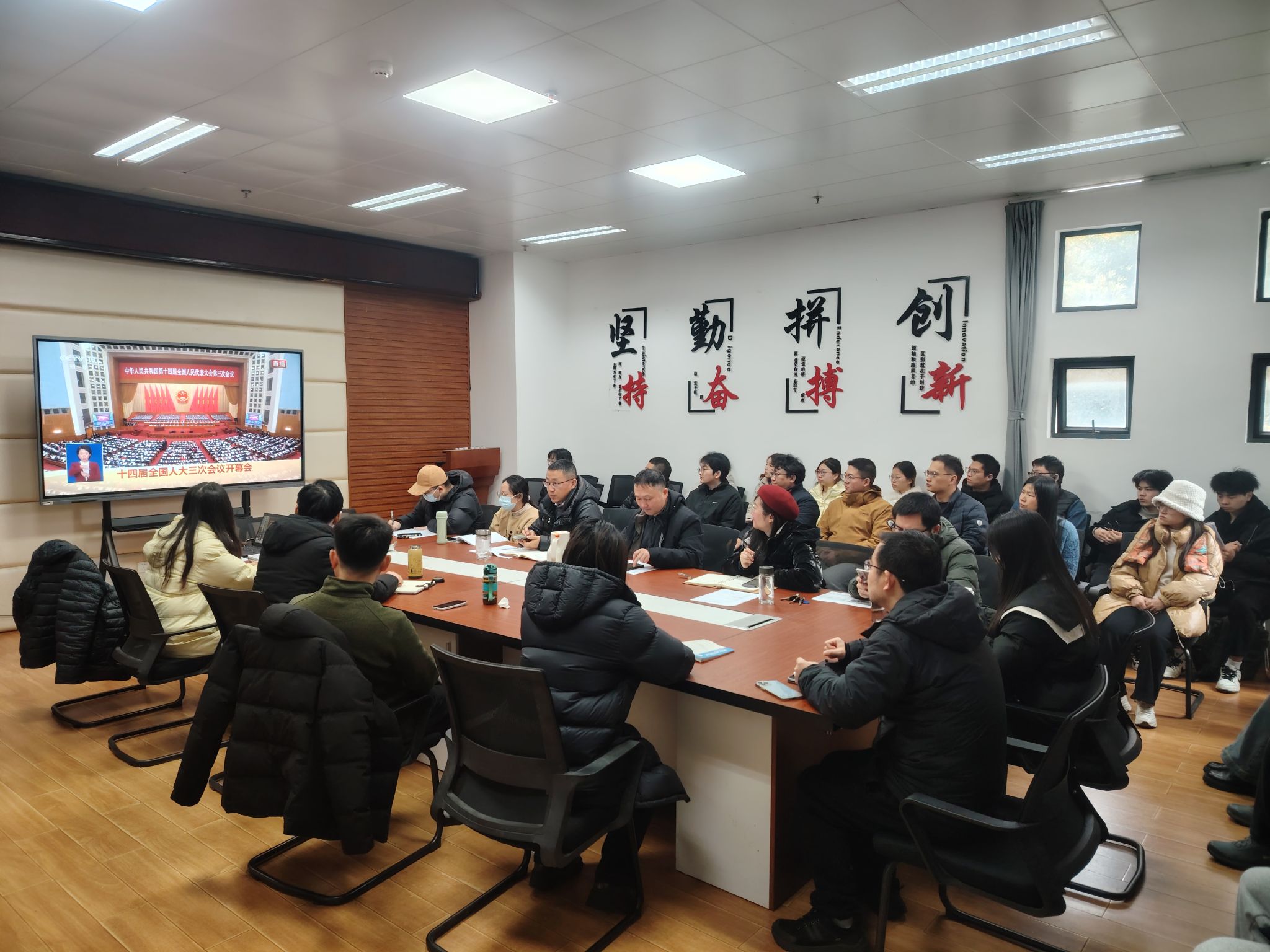 3月5日9时,第十四届全国人民代表大会第三次会议在人民大会堂举行开幕会。麻豆 组织师生代表于一综B113集中观看,学习领会会议精神,汲取工作奋进力量。