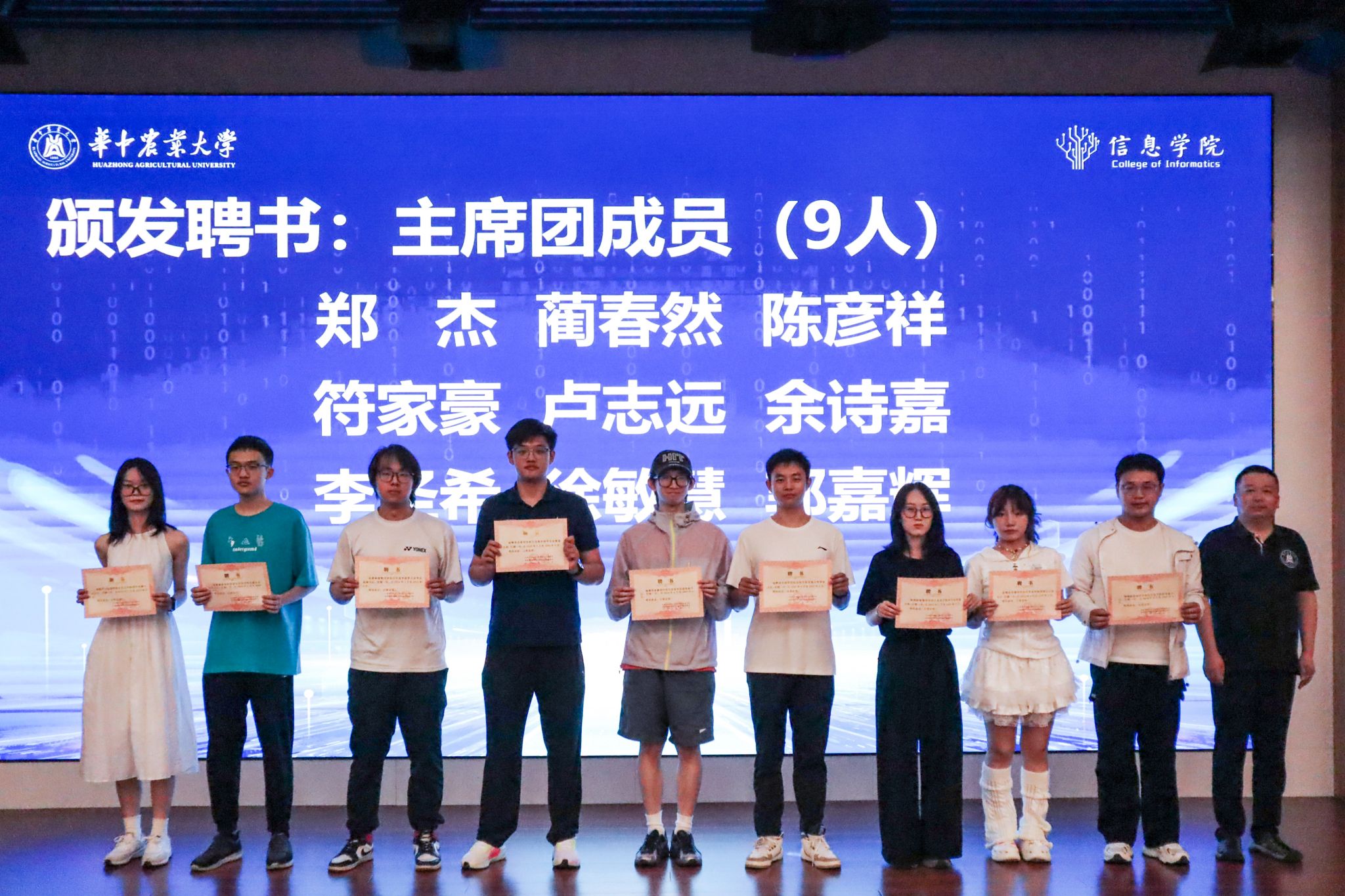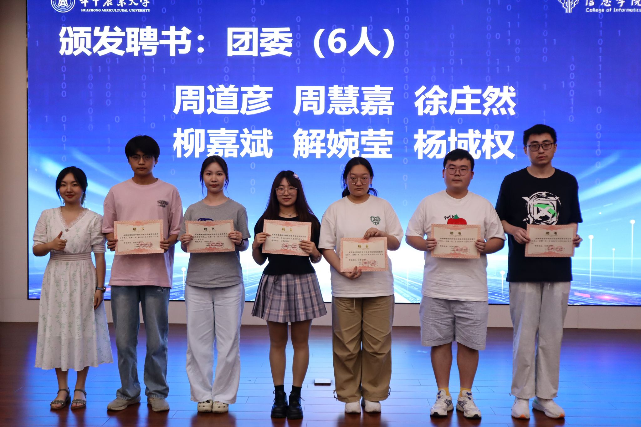 学院党委副书记刘进和辅导员分别为圆满完成任期的2024-2025学年党团学生组织负责人颁发聘书,学生会指导老师倪丹宣布了2025-2026学年党团学创部门负责人名单,新任党建办副主任石钟玉代表新一届学生骨干发言,表达了薪火相传、接续奋斗的决心和承诺。