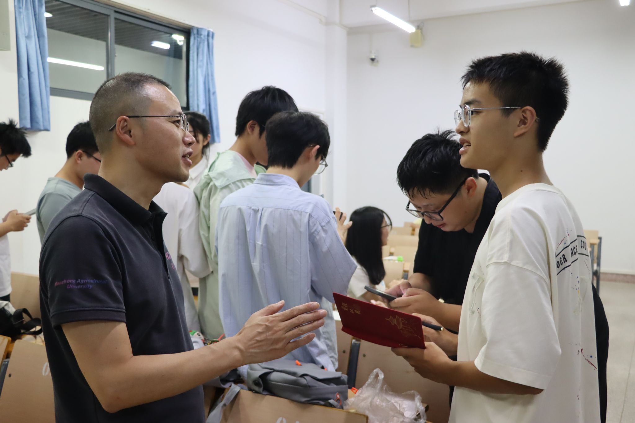 班会伊始,新同学们跟随艺术团成员学习并演唱校歌,用心感受其中蕴含的代代华农学子的精神传承。随后各班学班、下班简要介绍了丰富的校园活动,并为同学们进行了反诈骗教育。在新生自我介绍环节中,各班进行了不同的破冰小游戏来拉近新同学之间的距离,信科2503班用击鼓传花的游戏来决定介绍顺序,一改往常按学号上台的常规方式,计算机类2501班则是通过名字接龙的方式来帮助同学们快速认识彼此。