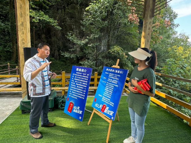 8月16日至18日,实践团深入宜昌市长阳县的庄溪村和郑家榜村,探访土家族文化传承现状。在庄溪村,成员们在当地特色商店看到了琳琅满目的传统服饰和工艺品,其鲜艳色彩和精美工艺展现了独特的土家族文化魅力。实践团与当地居民深入交流,了解了土家族发源地武落钟离山作为土家族精神象征的重要意义。在郑家榜村,成员们了解到"九佬十八匠"的传统,以及木雕、石雕、竹编等手工艺品在文化传承中的重要性。成员们还观看了国家级非物质文化遗产"南曲"的表演,三位身着传统服饰的艺术传承者为大家呈现了一场独特的听觉盛宴。表演后,实践团成员郑宇晗与一位南曲传承者交流,传承者简单展示了基础的南曲技巧,让成员们对这一传统艺术有了初步认识。通过此次实地考察,成员们深入了解土家族丰富的民俗文化,感受到这些文化瑰宝在乡村振兴中的重要作用。