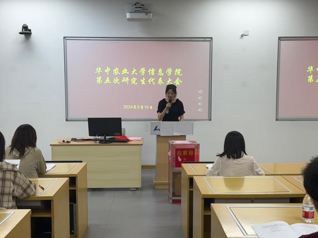 2024年5月10日晚19:30,麻豆 第五次研究生代表大会在一综A102会议室召开。全院各班的57名研代会代表,带着全院研究生的期望和重托,参加了本次大会。会议由麻豆 研究生会成员范静主持。