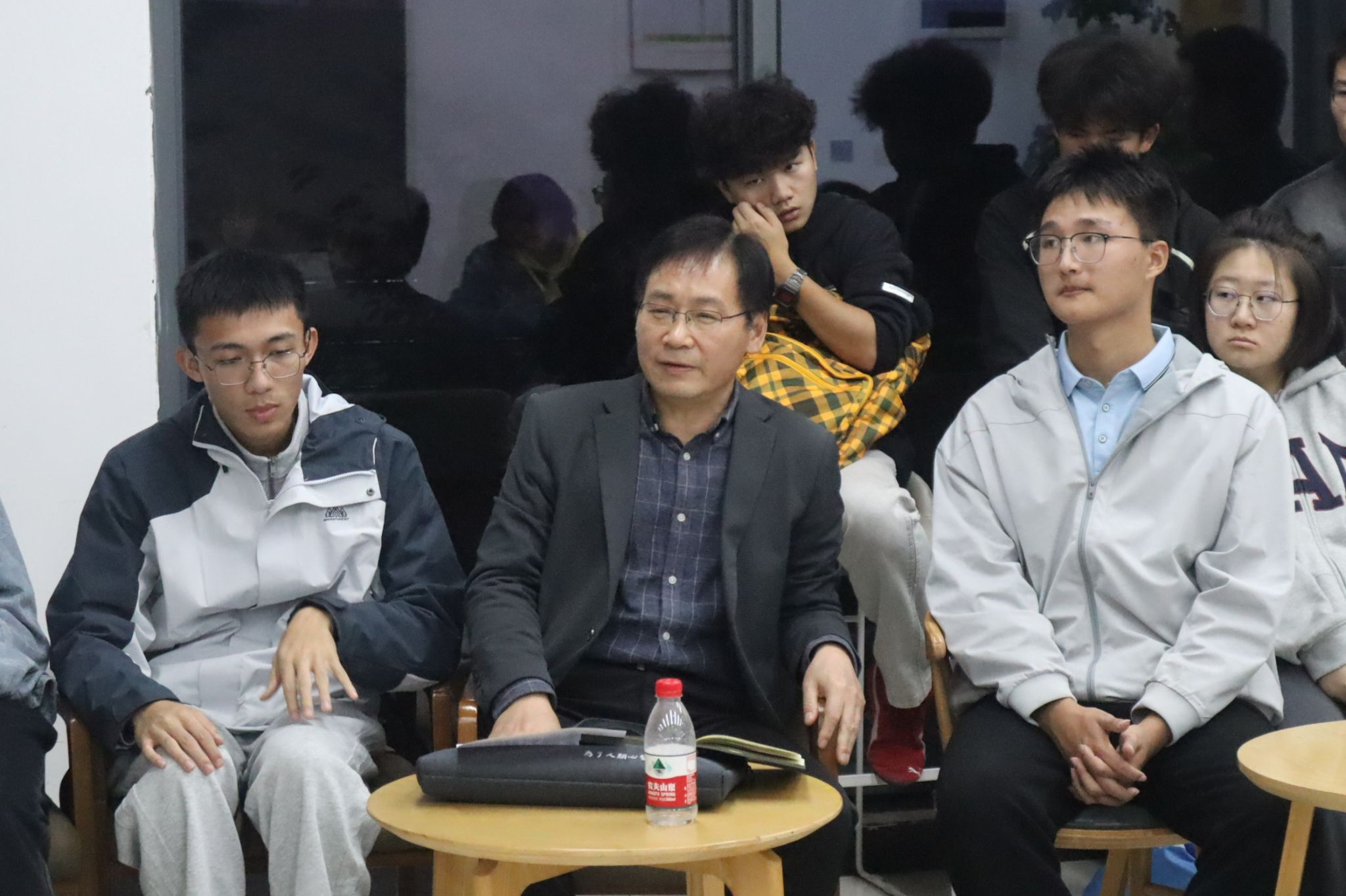 活动中,四位老师与同学们围坐在一起,同学们积极分享近一个月的学习收获与体会,师生围绕学科交叉、科研探索、未来发展方向等方面展开交流。针对同学们提出的问题,老师们一一进行解答。