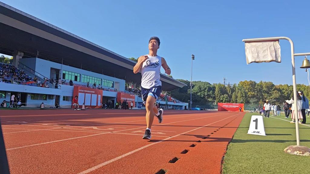 在第二天的比赛中,来自计科2102的蓝鹏也当仁不让,以弦箭破风之姿驰骋赛场,以劈波斩浪之势书写荣光,以热血奋斗之态追逐梦想。当他迈步越过终点线到达胜利的彼岸,欢欣鼓舞与热烈掌声响彻耳畔。