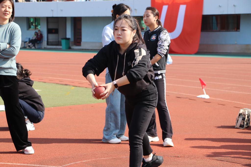 上午,李晓老师倾尽全力将手中的实心球抛向投掷区中,铅球在半空中滞空般地滑翔画弧,最后它心满意足地躺进了最远的沙坑里——10米81!李晓老师获得前抛实心球教工女子第一名,拉开了信院运动健儿们收获名次的序幕。