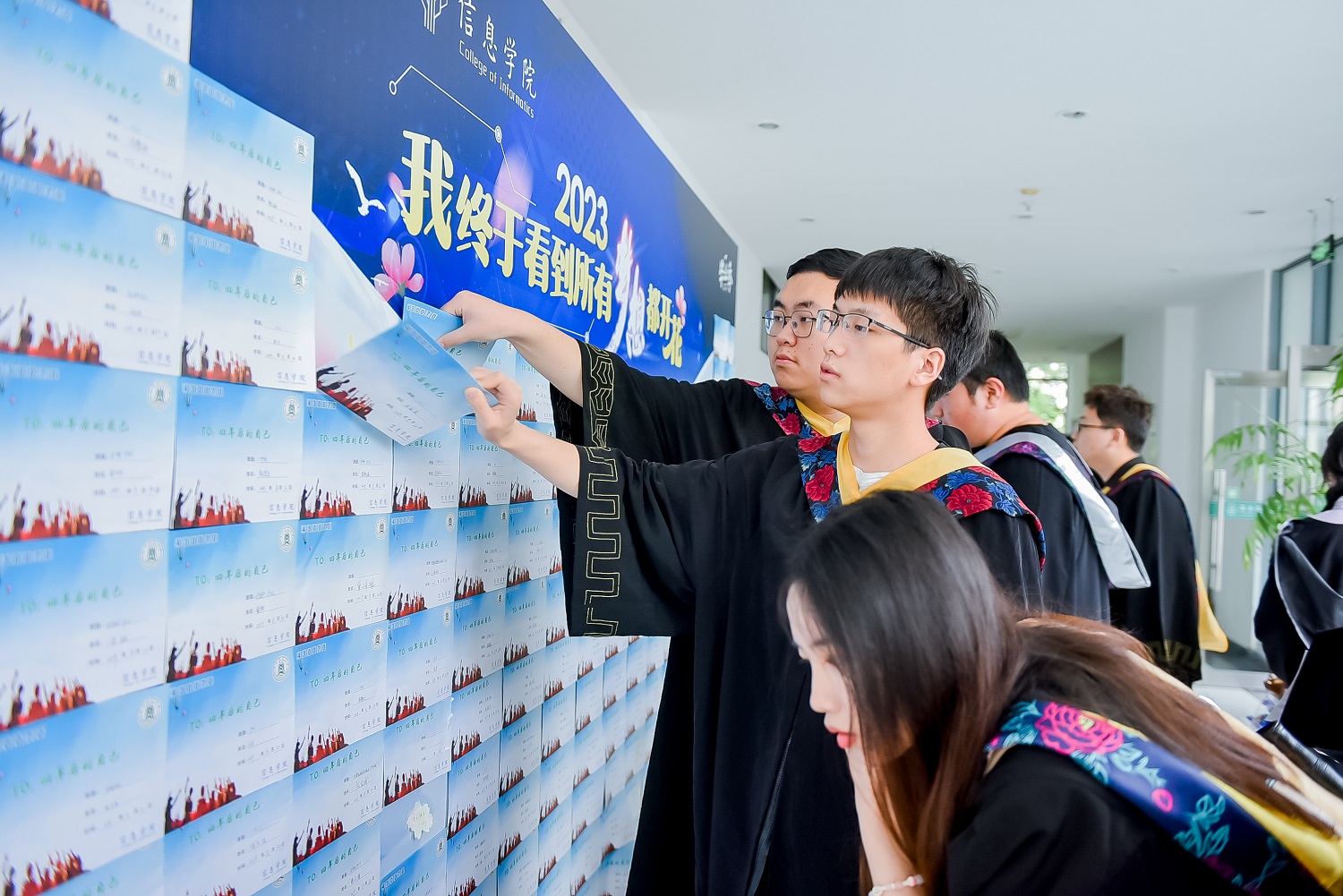 会场外布置了一面签名墙,一封封书信贴满了整面墙。入场前,毕业生们惊喜地发现,这一封封信正是他们这届学生在四年前初入华农时每个人写给四年后自己的一封信。1391天前,在同一地点举行的麻豆