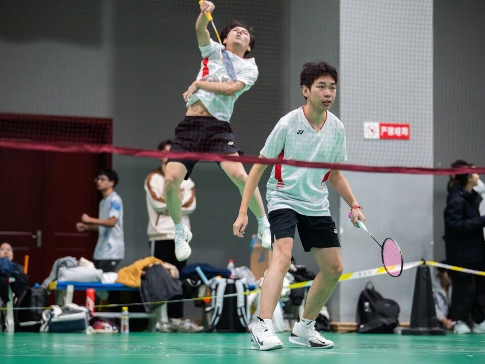 在上午的比赛中,我院的选手们全程聚精会神,每球必争。羽毛球在空中划出凌厉弧线,选手们的目光如影随形,球拍的每一次挥舞都带着破风声响,吊球轻落、搓球巧变、救球迅猛……经过上午的激烈角逐,最终我院研究生男子单打选手王烨、本科生男子单打选手周楷涵杀出重围,顺利晋级。
