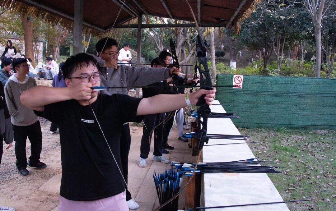经历高强度的团队协作项目后,真人CS与射箭体验为大家提供了放松身心的机会。同学们在奔跑与瞄准中释放活力,享受户外运动的乐趣,也在轻松的氛围中进一步增进了彼此友谊。