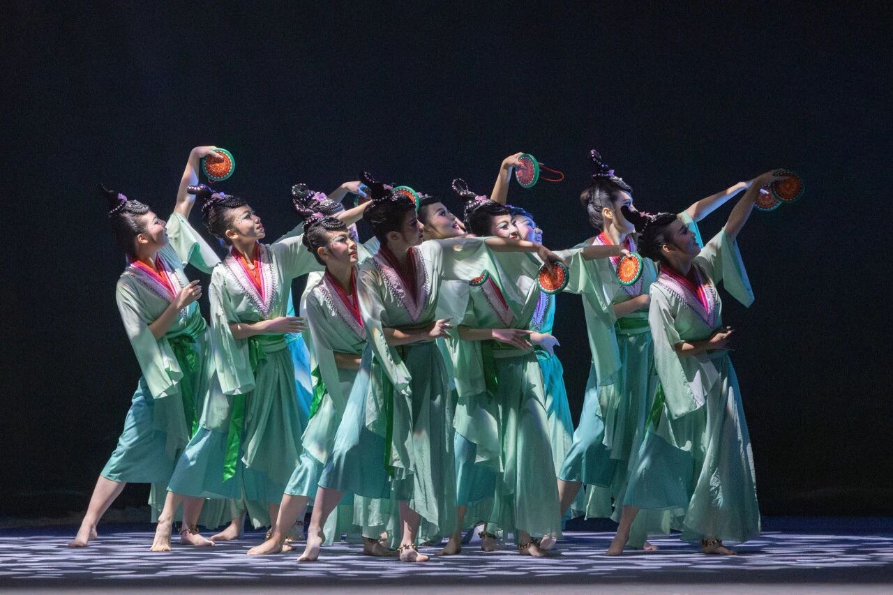 随着鼓点渐起,其余舞者有序加入,队形变幻间,既再现了传统舞蹈中经典的编排精髓,又通过富有现代感的衔接方式,让古老的舞蹈语言焕发出新的活力。当舞蹈进入高潮,全体舞者围绕鼓形道具整齐起舞,莲影交织、鼓韵铿锵,不仅展现出团队的默契配合,更象征着传统文化在代代相传中不断汇聚力量、生生不息。