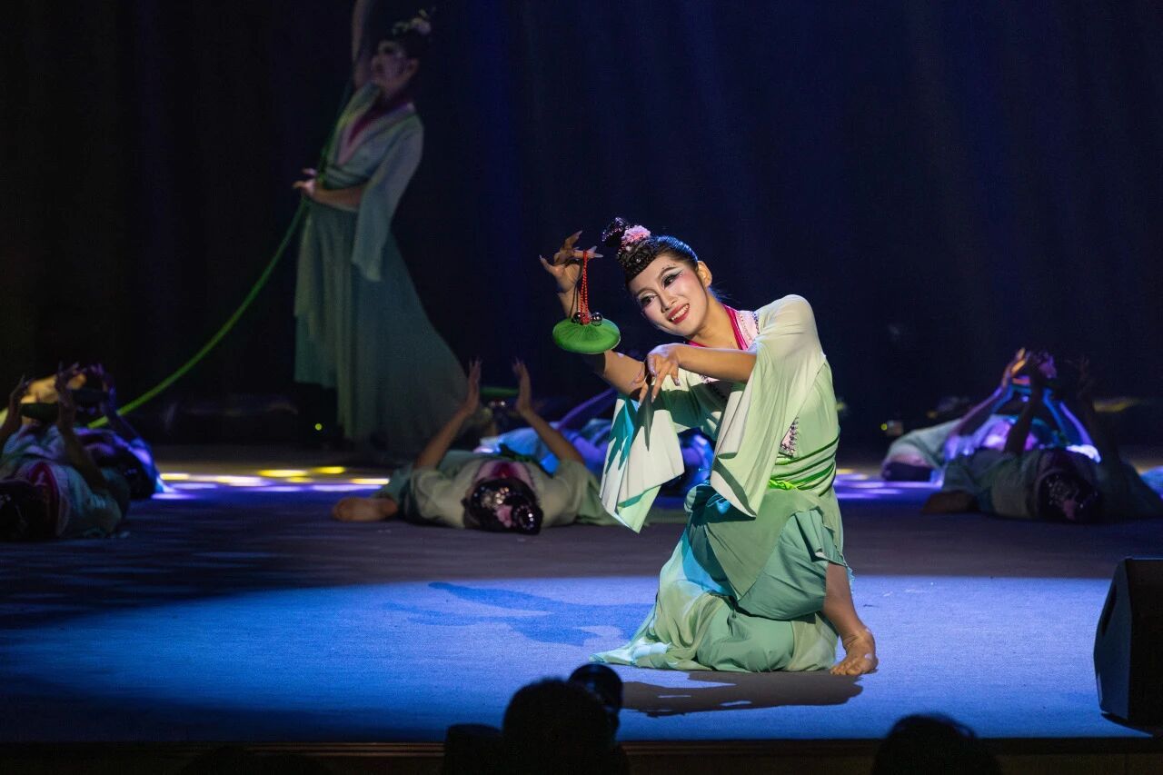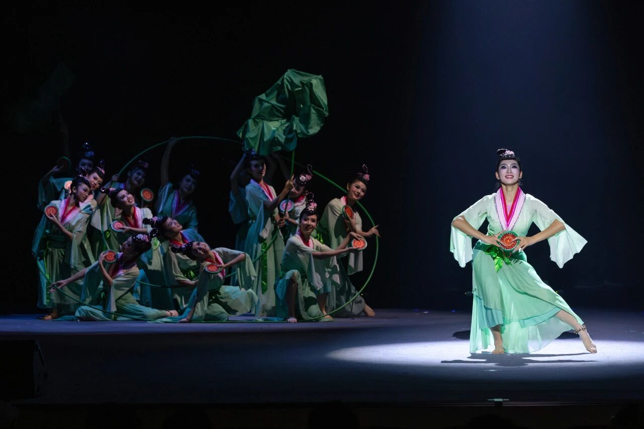 舞蹈开场,柔和的灯光下,一名舞者以舒展的姿态率先登场,宛如莲花初绽,瞬间将观众带入静谧悠远的文化意境。