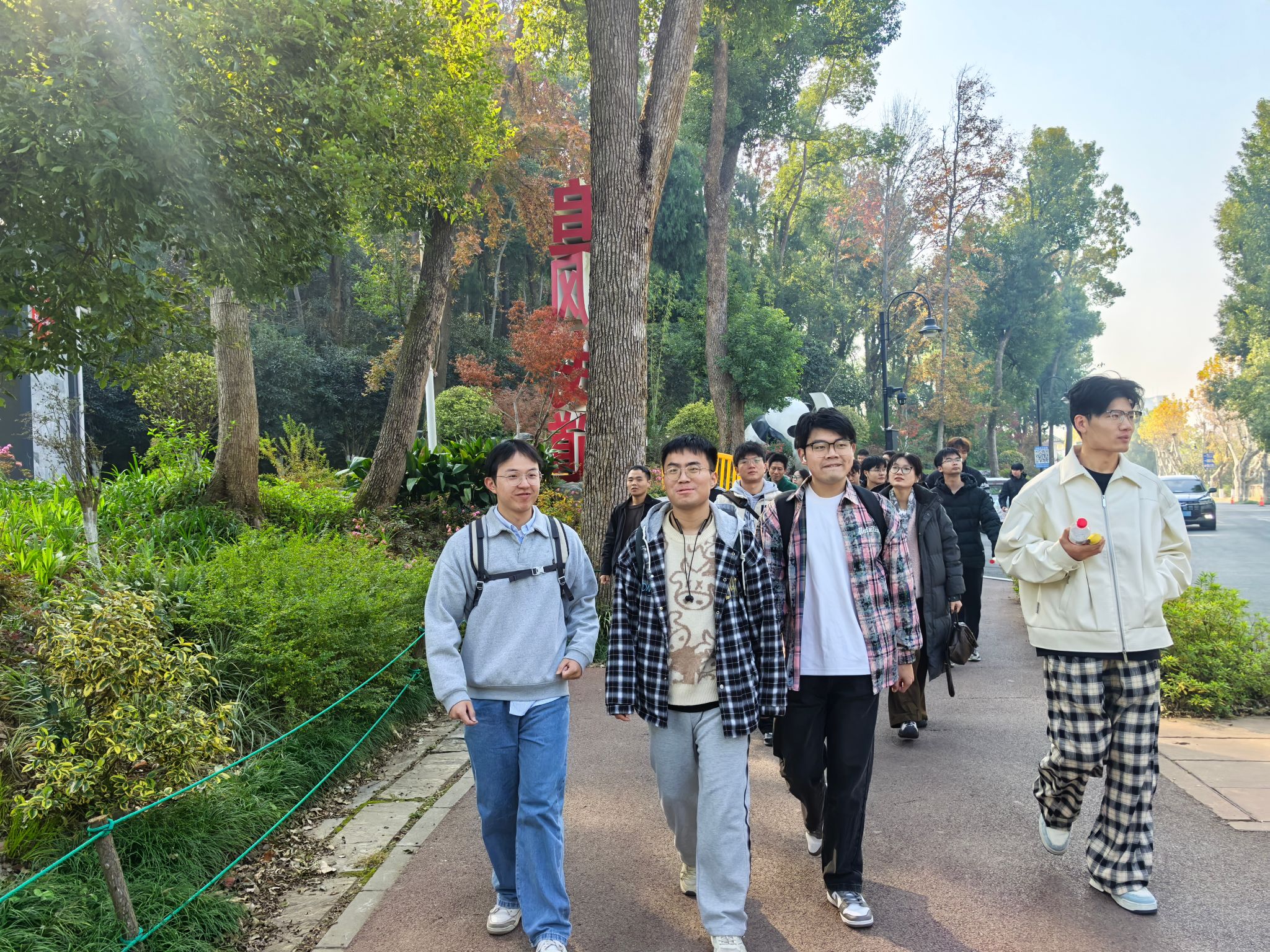 本次活动旨在引导同学们走出实验室,投身户外的广阔天地。作为武汉名副其实的“天然健身房”,马鞍山森林公园坐拥713公顷的苍翠山林,森林覆盖率高达80% 。同学们暂时放下了手中的代码和论文,从荟园食堂出发,统一乘车前往这片城市绿肺,开启了一天的“有氧”之旅。
