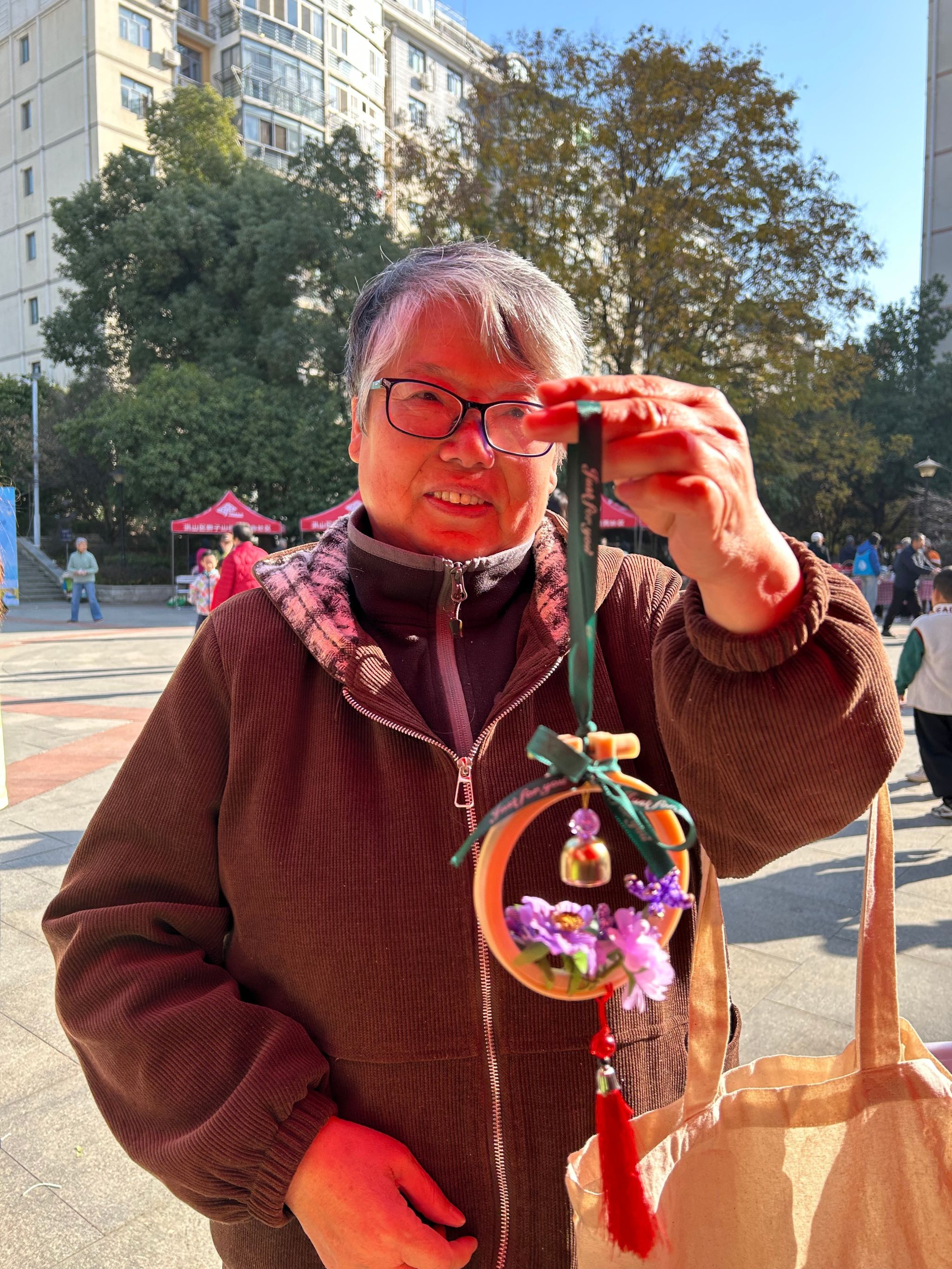 来自生信2502班的杨岚喧同学在活动结束后分享道:“看到老人们从构思到亲手完成一件独一无二的作品,眼中闪着光,我们心里也暖洋洋的。无论是风铃的清脆,还是艾草的芬芳,我们希望通过这些小小载体,传递陪伴的温暖,让社区长者的生活多一些色彩与回响。”