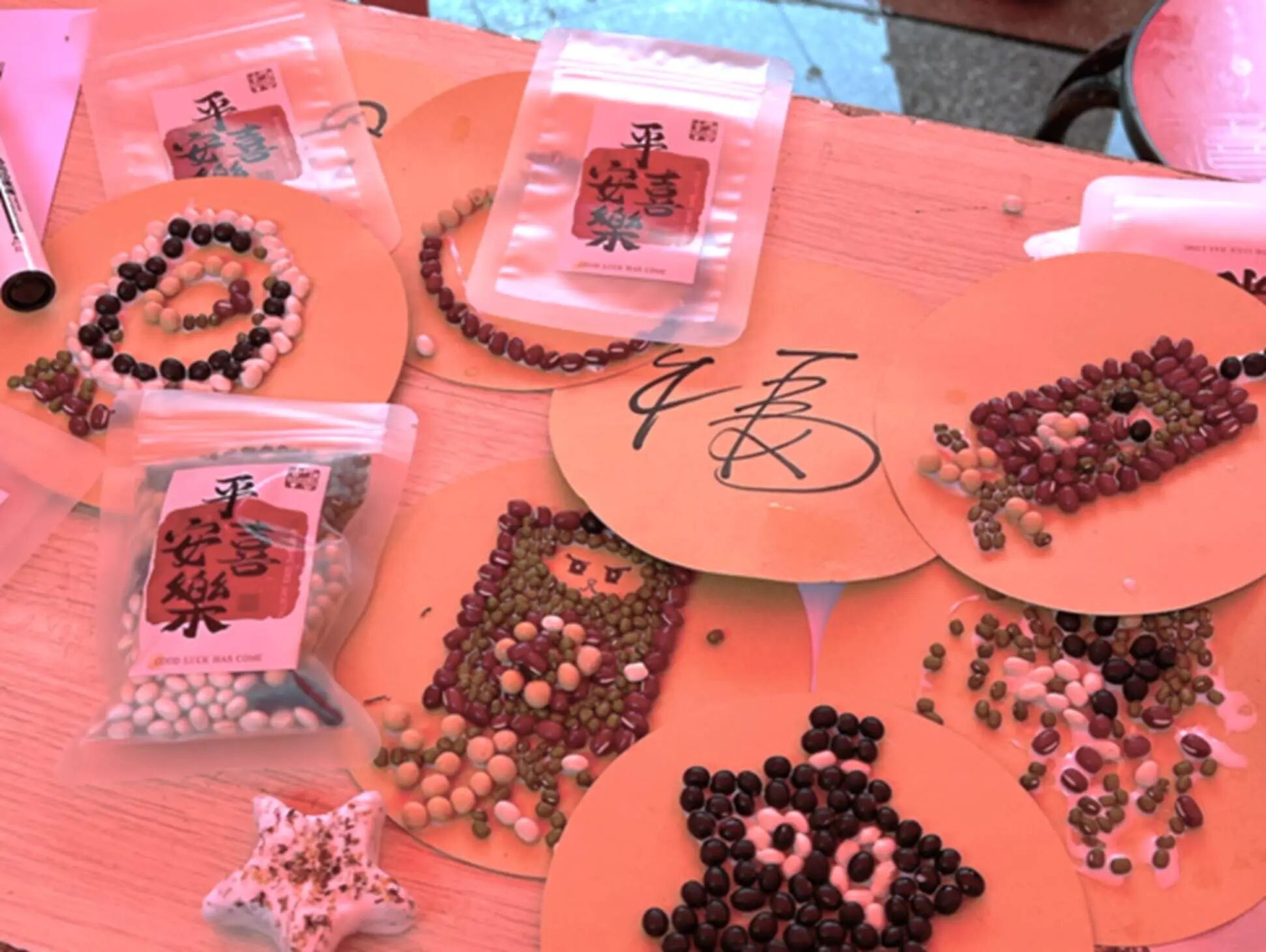 在“品桂栗糕暖,绘五谷画祥”区域,志愿者们为老人们送上传统糕点,并与孩子们一同挑选五谷杂粮、精心拼贴,共同制作出象征健康与长寿的图画。活动结束后,志愿者们将剩余的五谷杂粮分装成小袋,贴上“平安喜乐”标签赠予老人,让温情伴随祝福融入日常生活。