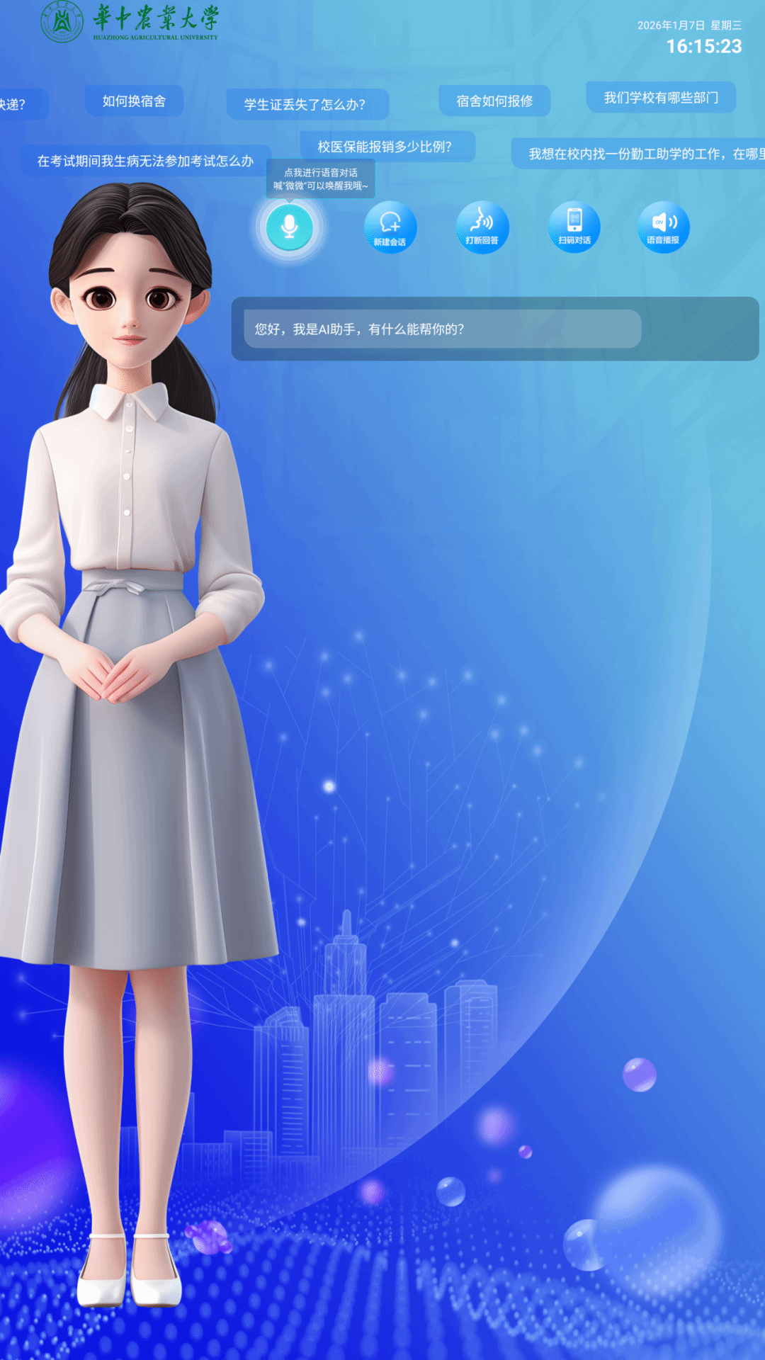 展望未来,如果你也想:提问实时答、找政策不迷路、体验校园“黑科技”、甚至参与她的成长,欢迎亲自来到一综与AI辅导员智慧屏来一次互动,问她一个问题,给她一份反馈,让AI成为你大学生活中一位聪明又贴心的“辅导员”吧!