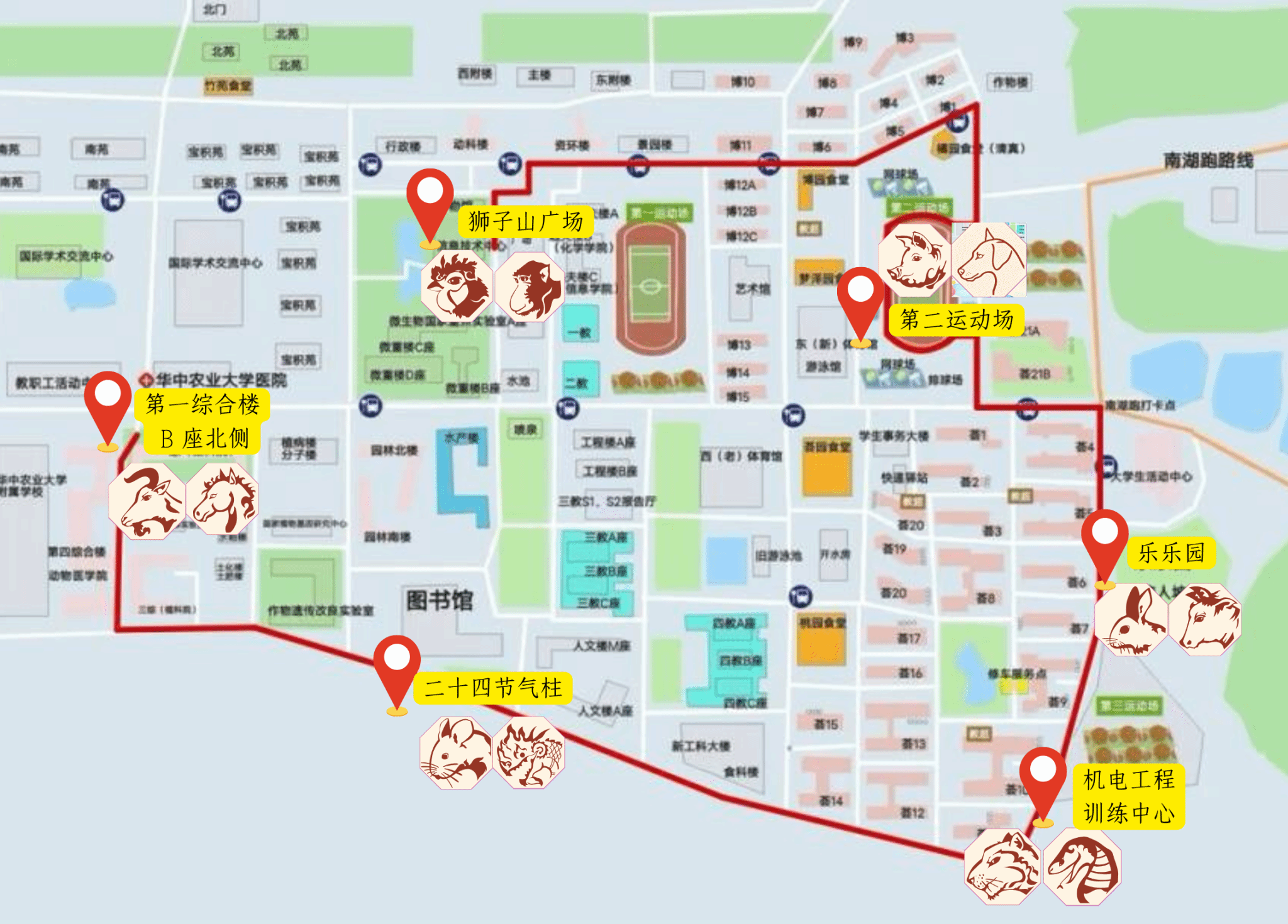 早在三月中旬,学院学生会秘书处、经资办、学术科技部、生活保障与权益部、体育部、女生部等多个部门便启动了筹备工作。成员们多次开会讨论,结合学院成立十二周年与马年的特殊寓意,最终确定了“生肖闯关”的创意主线——全程6个打卡点,每个点位对应两个生肖,师生完成游戏即可获得生肖图章,集齐12枚兑换终极大奖。