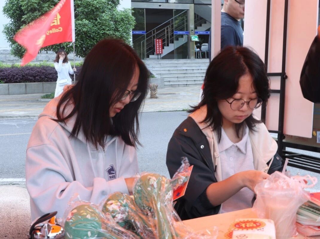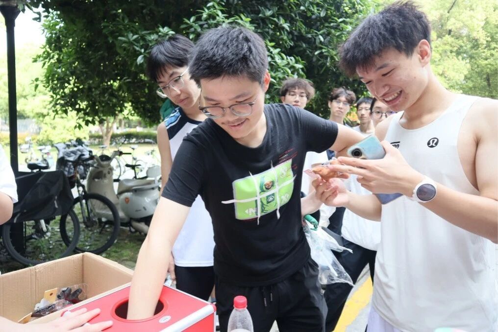 随着最后一名同学冲过终点,现场的气氛被推向高潮。大家手持集齐的生肖图章,迎来了最受期待的终点抽奖环节。欢呼声与喝彩声此起彼伏,中奖的同学们欣喜不已;即便领到参与奖的同学,也都拿着小挂件露出满足的笑容。每个人的脸上都洋溢着运动后的酣畅与中奖的喜悦,为这场春日奔跑画上了圆满句号。计算机 2503 班的李睿赛后说道,“本来还担心跑不下来,结果一路玩着游戏就到终点了!也祝学院十二周岁生日快乐,未来更精彩!”