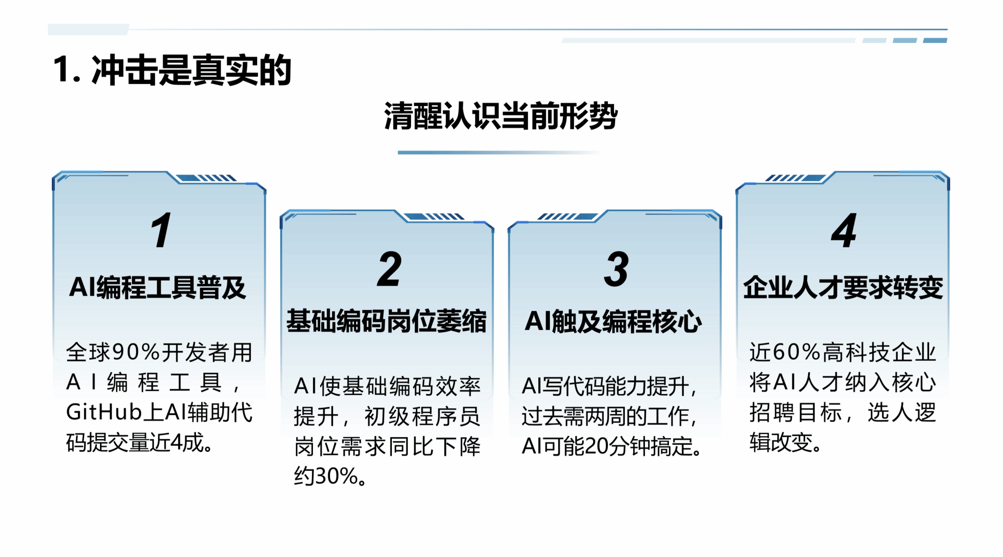 面对人工智能的快速迭代,刘进引用多组数据指出,AI正深刻改变计算机行业的就业格局。他表示:“AI不会完全取代程序员,但会用AI的程序员将取代不会用AI的程序员。”他建议同学们学会使用AI工具、打好专业基础、从“写代码”转向“教AI写代码”,并培养系统设计、复杂问题拆解、沟通协作等AI难以替代的能力。