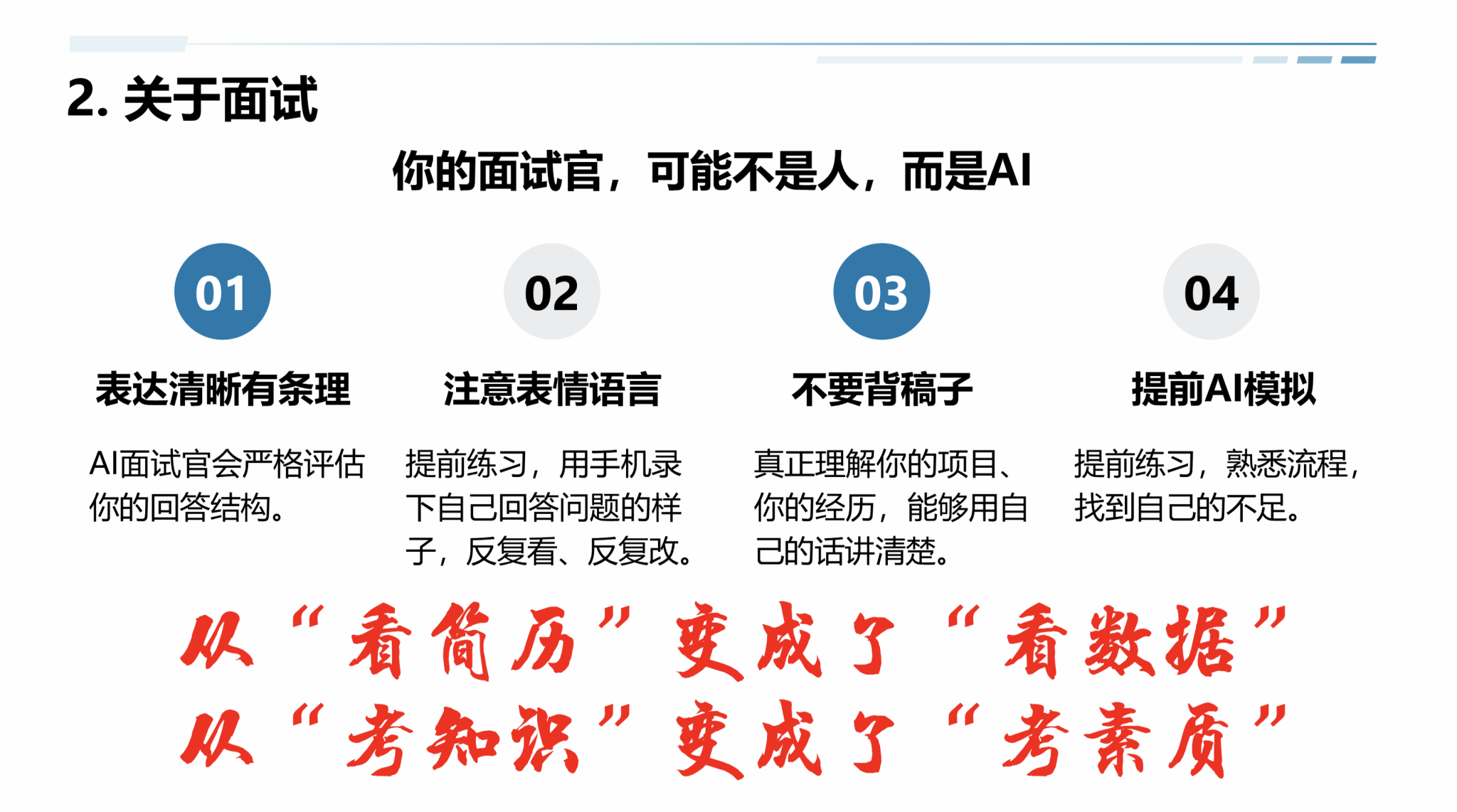 在简历与面试方面,刘进分享了简历撰写的核心公式——“简历=学历+经历+能力=简单+真诚+匹配”,并特别提醒大家关注AI面试的普及。他指出,44%的全球企业已在招聘中部署AI技术,央企校招AI使用率超过70%,同学们需提前练习结构化表达、微表情管理及AI模拟面试。
