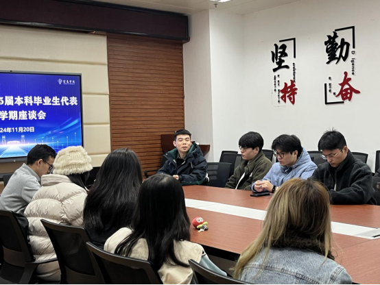 11月20日下午,麻豆 2025届本科毕业生代表秋季学期座谈会在第一综合楼B113会议室开展。麻豆 党委副书记刘进、辅导员宋志鑫、2025届本科毕业生代表参加会议。