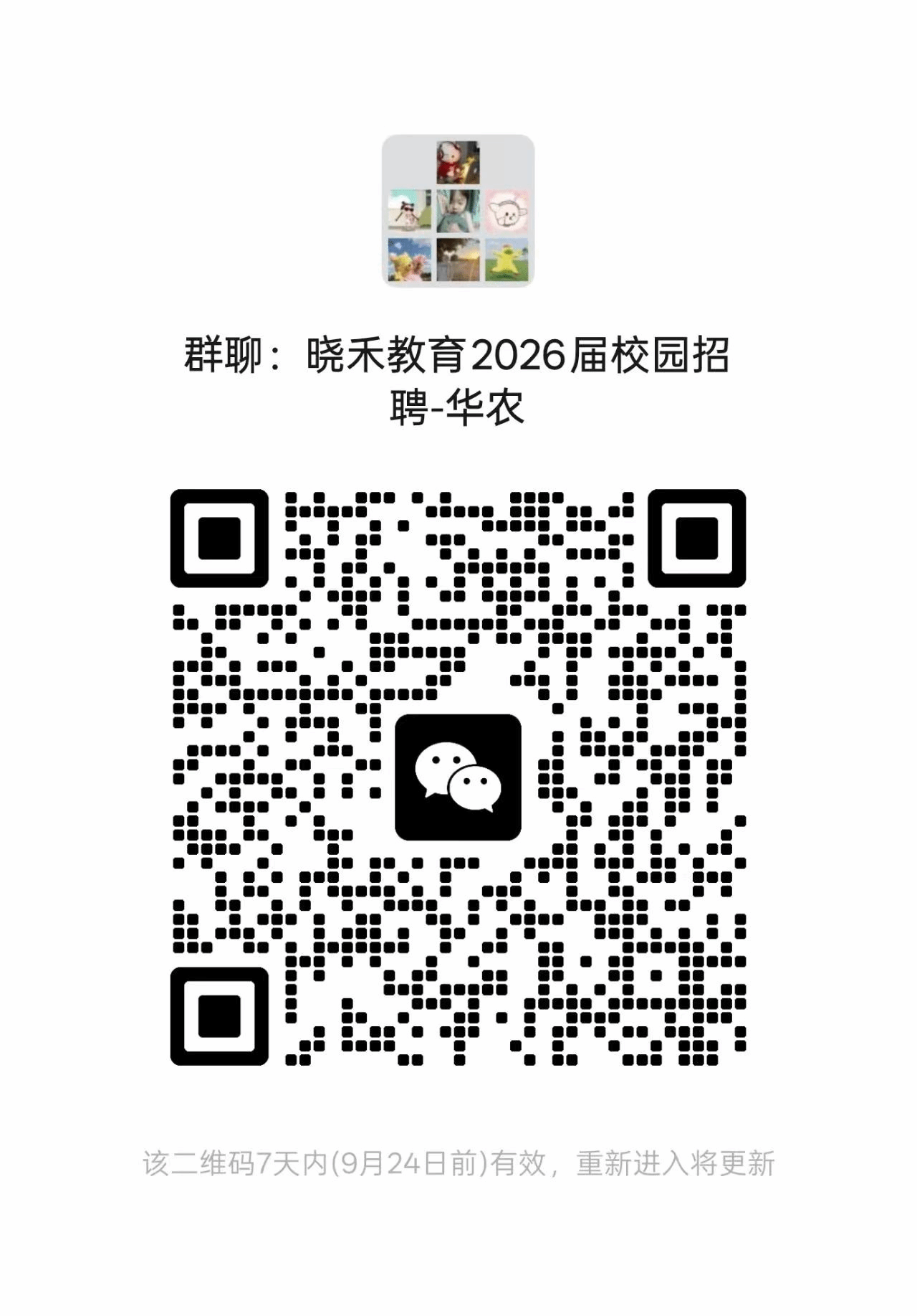 👇扫码加入【晓禾教育2026届招聘群】,抢先拿Offer、赢惊喜! (微信群二维码详见海报)
