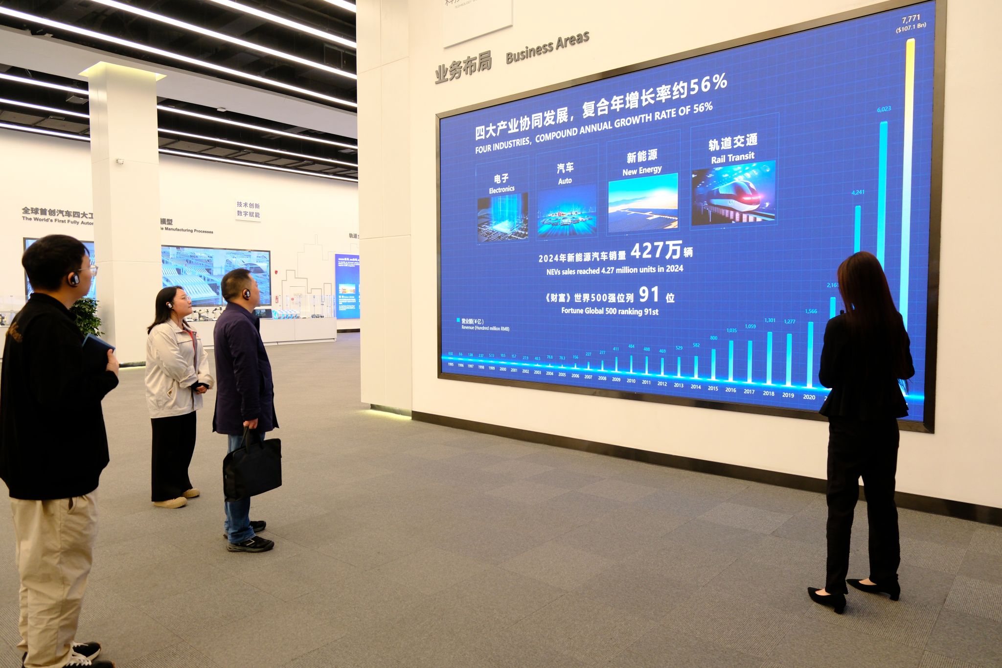 在比亚迪股份有限公司,刘进一行参观了企业展厅,详细了解了比亚迪在新能源汽车、智能网联等领域的技术突破与产业布局,双方就人才结构、招聘需求等话题交流。