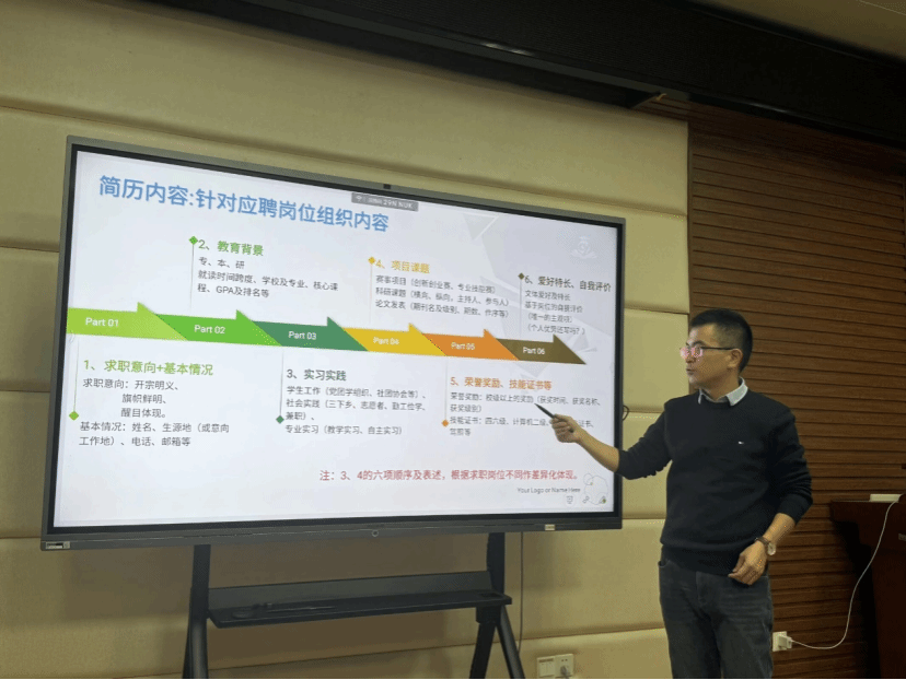 (文字|陈钰轩 图片|熊睿彬,郭芊芊 审核|苗壮)为助力同学们高效掌握简历制作的实用技巧,在求职时期打造出能凸显个人优势的高分简历,麻豆 于11月17日晚19:00在第一综合楼B113举办了“求职赋能,简历点睛——解锁简历制作高分技巧”专题活动。本次活动特邀中国教育在线特聘专家、宸宇生涯创始人穆凯锋老师为同学们带来一场深度讲解。