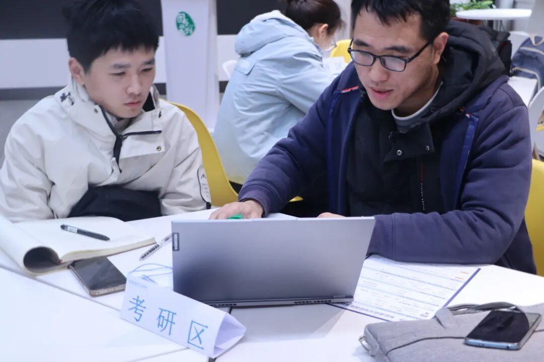 考研区内,老师围绕考研信息差梳理、院校及专业择校分析、公共课与专业课备考规划制定、复试流程及备考技巧等内容,为前来咨询的同学提供系统指导。针对部分同学提出的“跨专业考研如何准备”“目标院校报录比如何查询”等具体问题,老师逐一耐心解答,并结合往届案例给出建议。