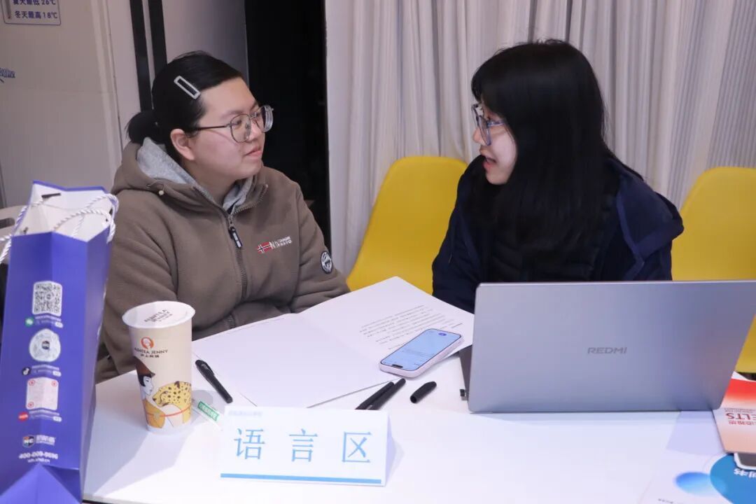 语言区内,老师围绕雅思、托福、小语种等考试,为同学们讲解各科学习备考规划,分享实用备考技巧,同时解读语言成绩在考研、保研、留学及就业中的实际应用价值,帮助同学们认识到语言能力对升学就业的多重助力。