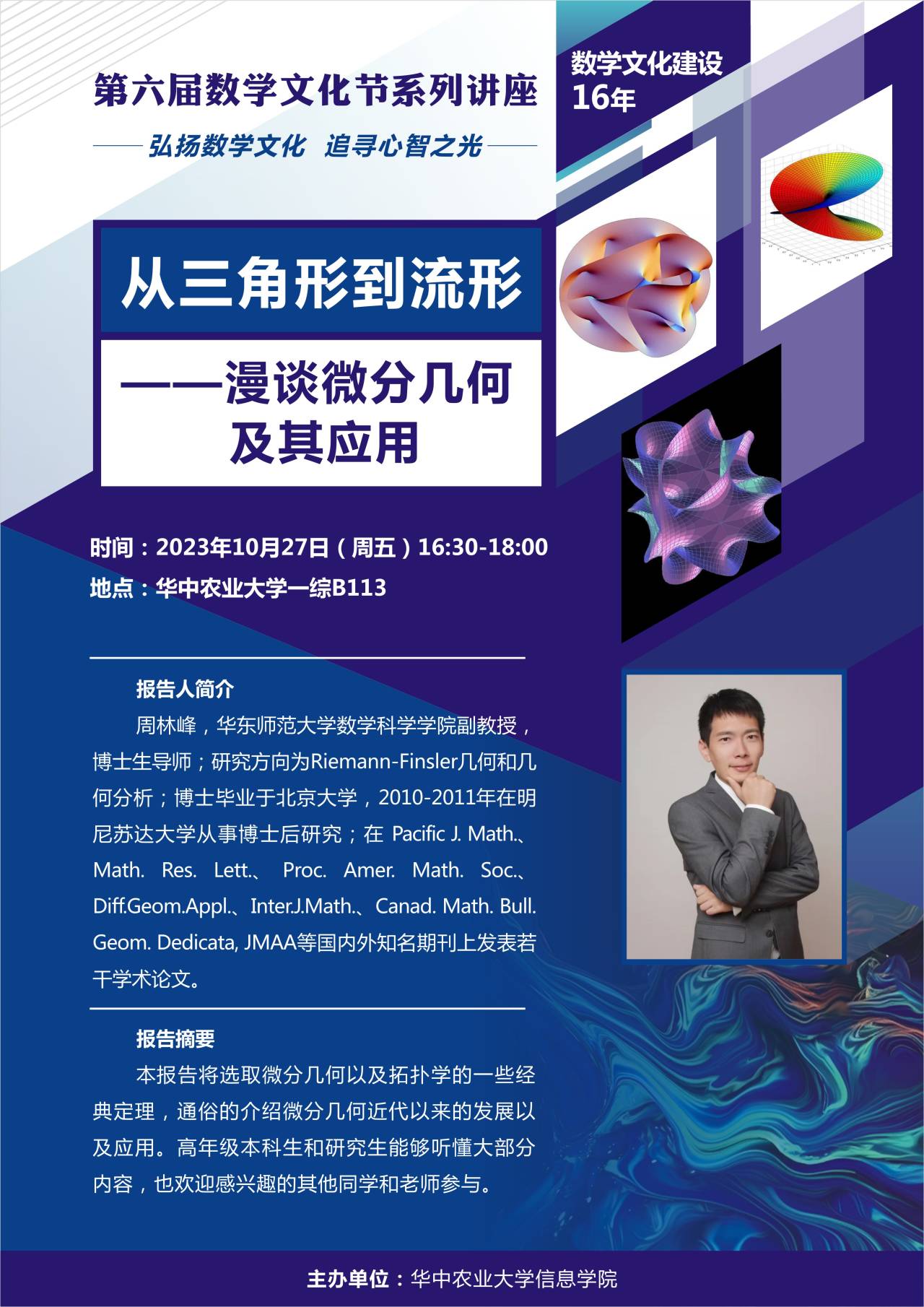 本报告将选取微分几何以及拓扑学的一些经典定理,通俗的介绍微分几何近代以来的发展以及应用。高年级本科生和研究生能够听懂大部分内容,也欢迎感兴趣的其他同学和老师参与。