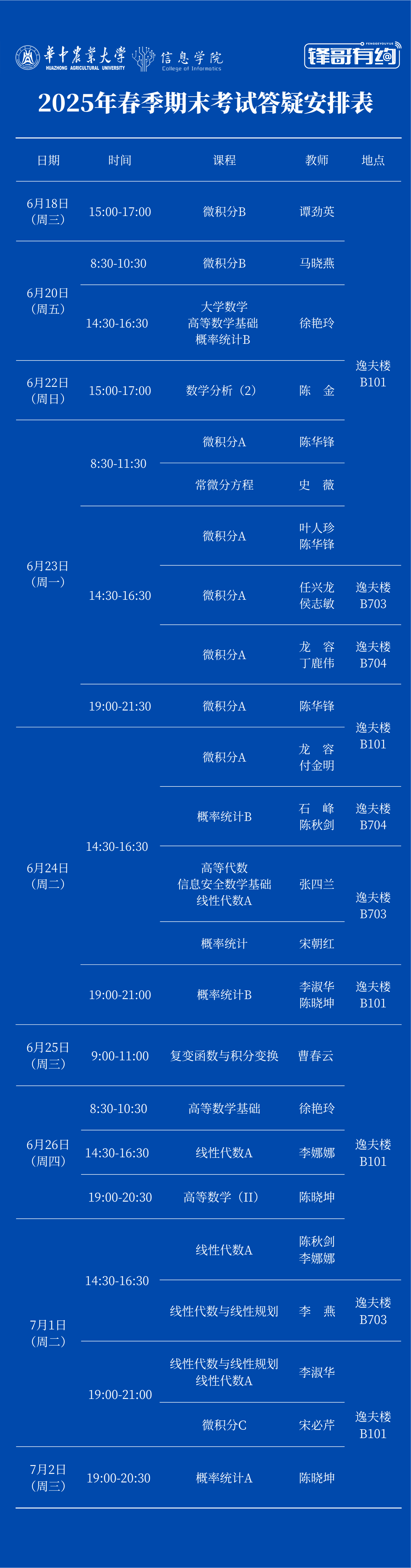 “锋哥有约”之2025年春季期末数学复习答疑安排
