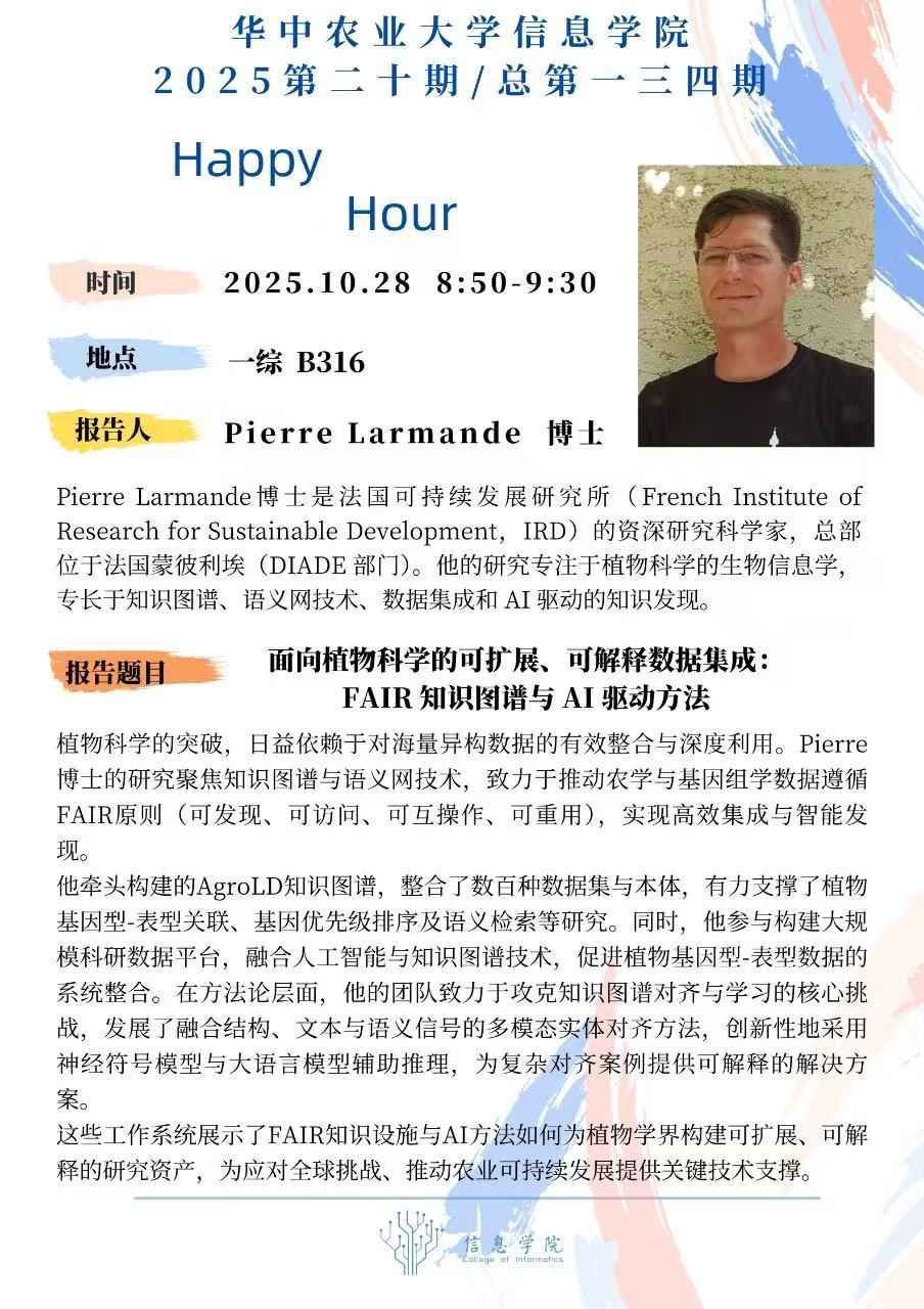 Happy Hour第134期: 面向植物科学的可扩展、可解释数据集成:FAIR知识图谱与AI驱动方法