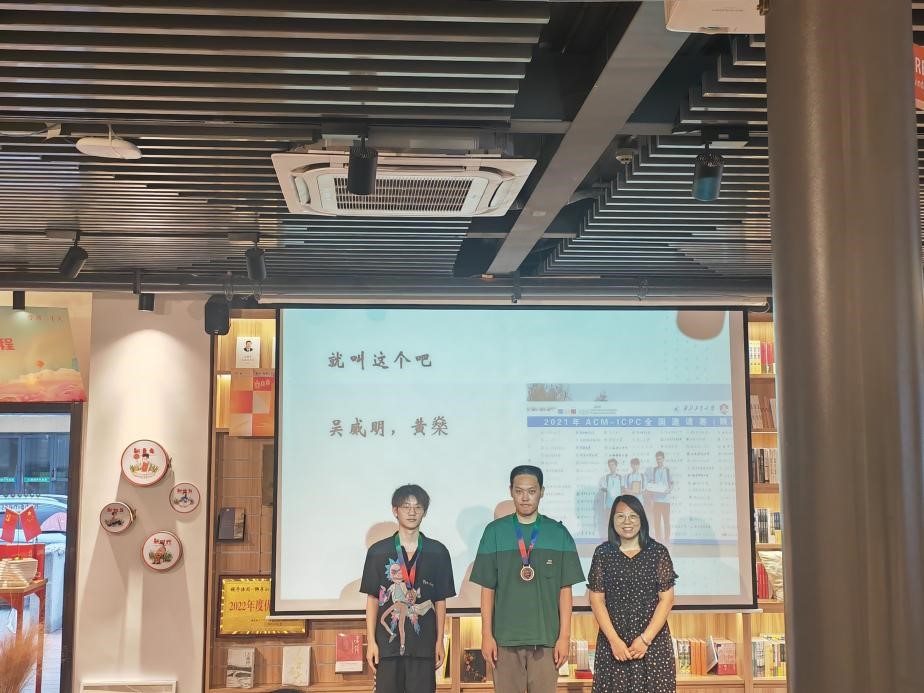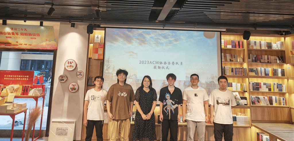 (图文|金腾辉 审核|徐勋光)2023年6月18日下午,麻豆 ACM团队荣誉队员授勋仪式及座谈会于倍阅书店举行。麻豆 党委副书记刘进老师、ACM总教练章英老师、2017~2022级ACM团队成员到场参加,为2023届即将毕业的荣誉队员朱焰星、张子强、肖书尧、吴威明、黄燊、许昊林、曹凯嫣、马颖涵等学长学姐送去最美好的祝福。因疫情原因,此次还为2022和2021届荣誉队员补发了勋章,在武汉的部分队员来到现场领取,其余队员的荣誉勋章以快递的形式寄出。