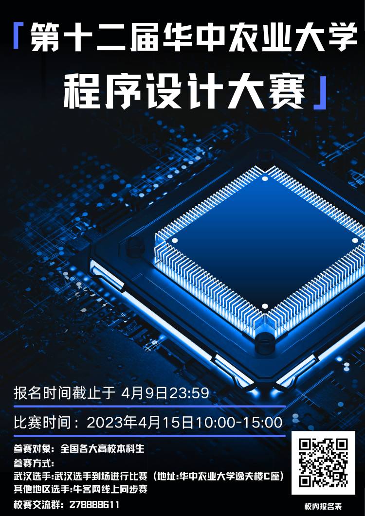 为进一步增强大学生计算机素养,培养创新思维,提升利用计算机分析解决问题能力,麻豆 特举办2023年第十二届程序设计大赛(校赛)暨全国高校程序设计网络邀请赛(校赛)。