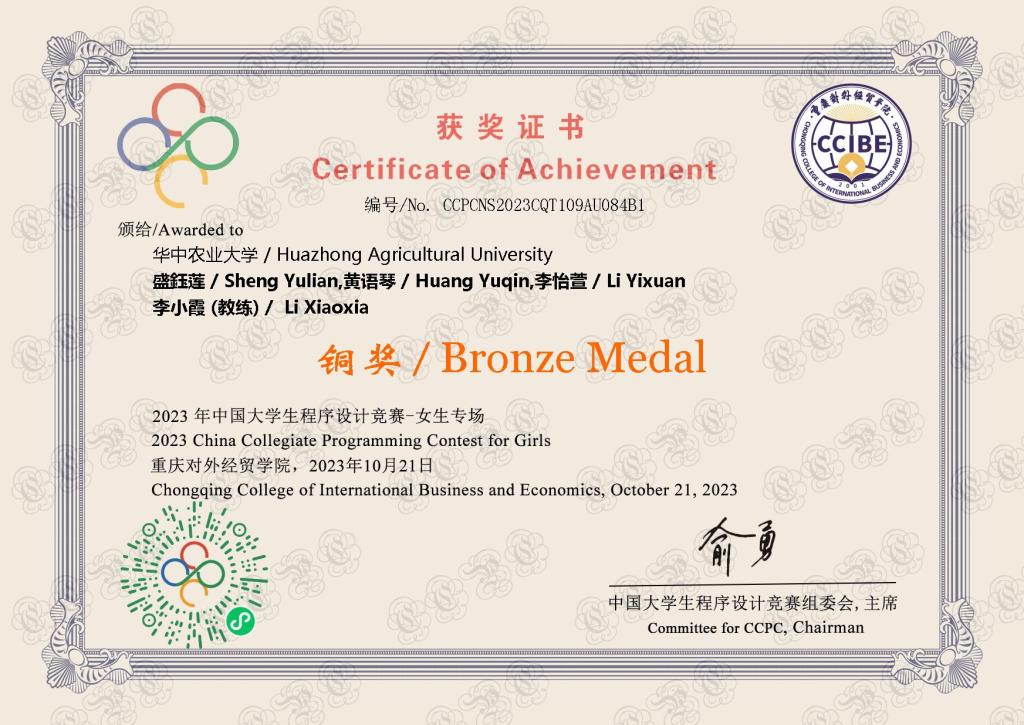 2023年ACM-ICPC国际大学生程序设计大赛亚洲区域赛(西安)——铜奖