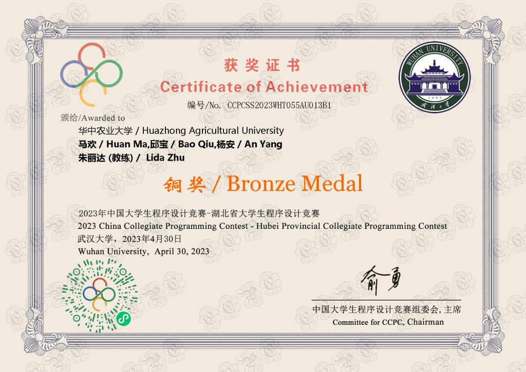 铜奖:马欢(21级大数据专业)、邱宝(21级计科专业)、杨安(21级人工智能专业)