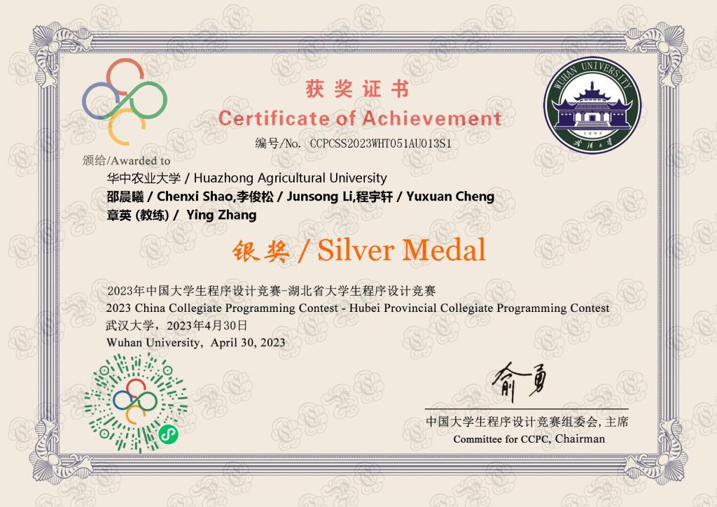银奖:邵晨曦(21级计科专业)、李俊松(20级大数据专业)、程宇轩(21级工学院自动化专业)