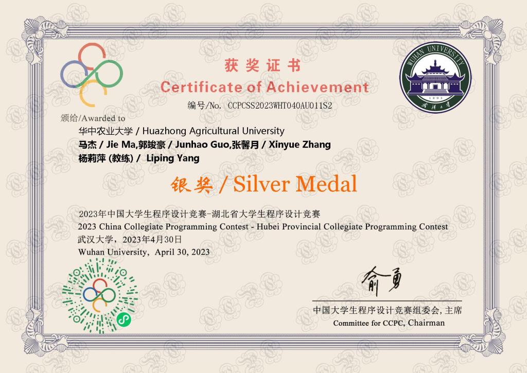 银奖:马杰(21级人工智能专业)、郭俊豪(21级计科专业)、张馨月(21级人工智能专业)