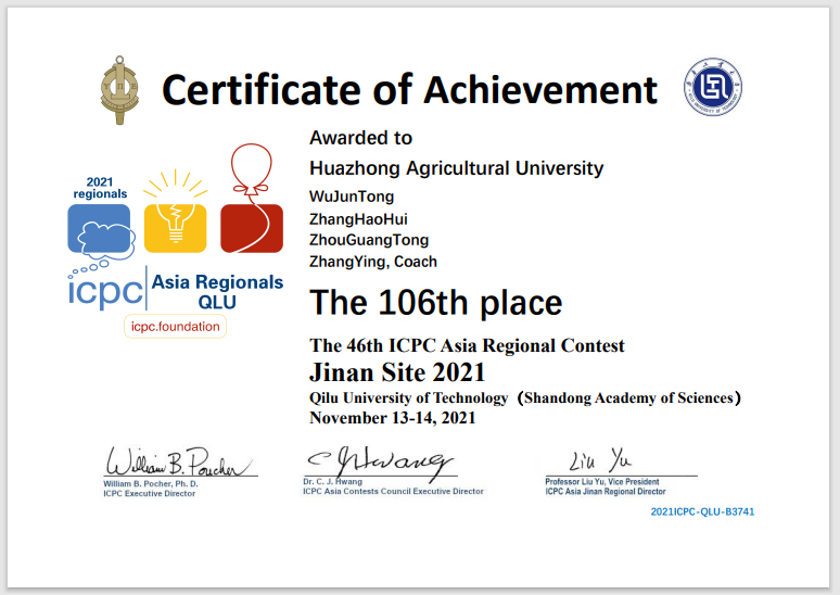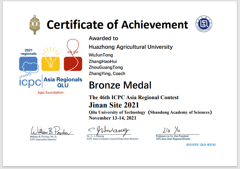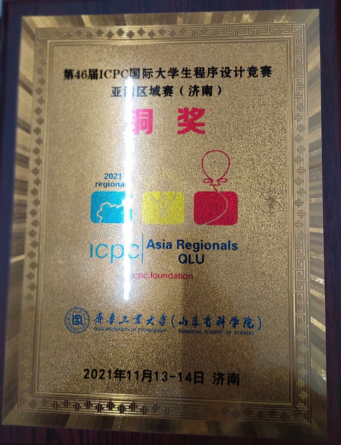 2021年第46届ACM-ICPC国际大学生程序设计大赛亚洲区域赛(济南)——铜奖